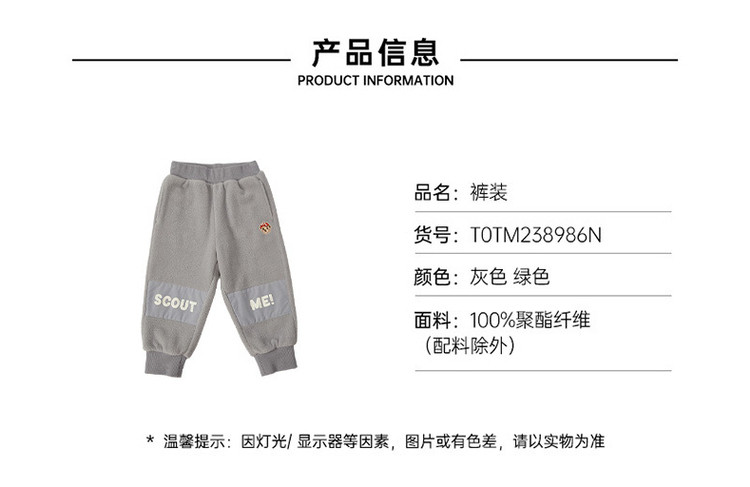 商品名称:小熊童装春季男女宝宝摇粒绒抗静电卫裤 417793