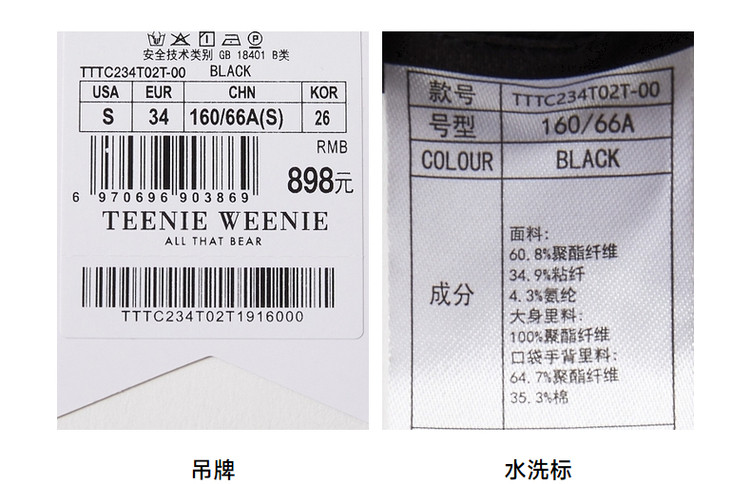 商品名称:小熊春秋款优可丝小脚裤运动裤休闲裤束脚裤黑色裤子 326849