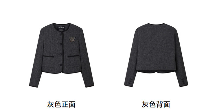 商品名称:小熊春秋款小香风圆领西服外套气质通勤时尚女装 161601