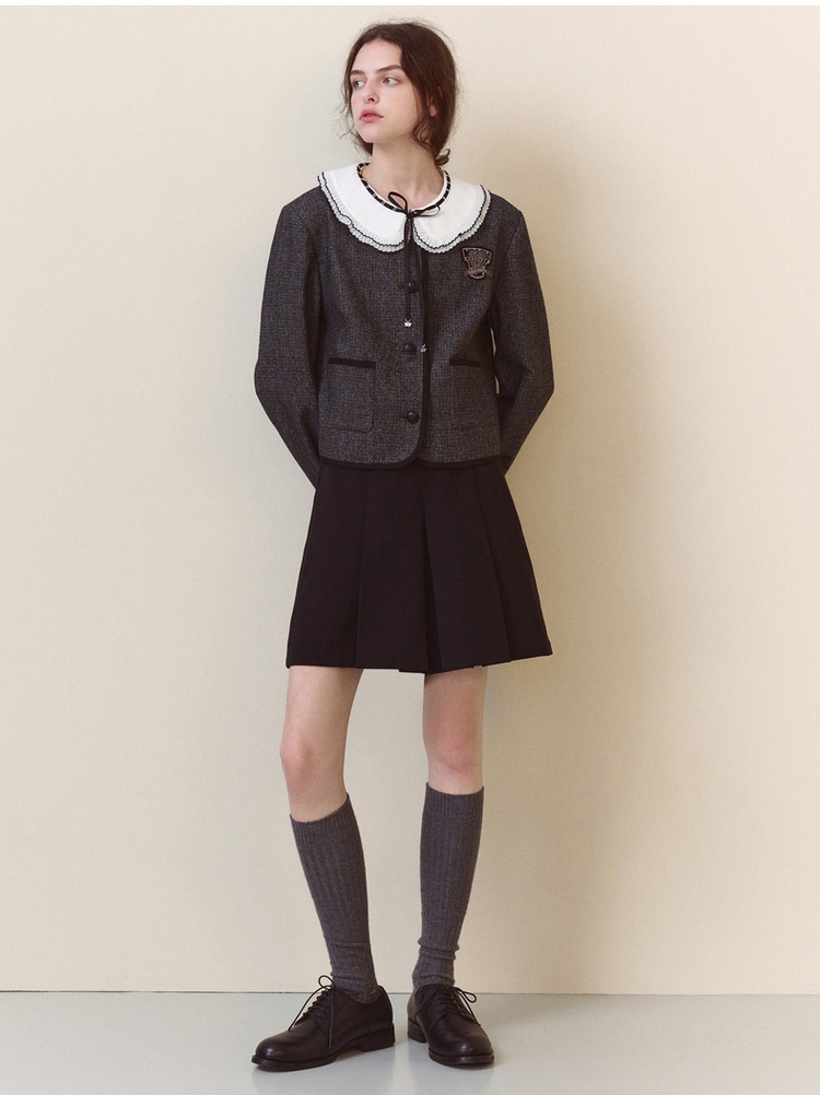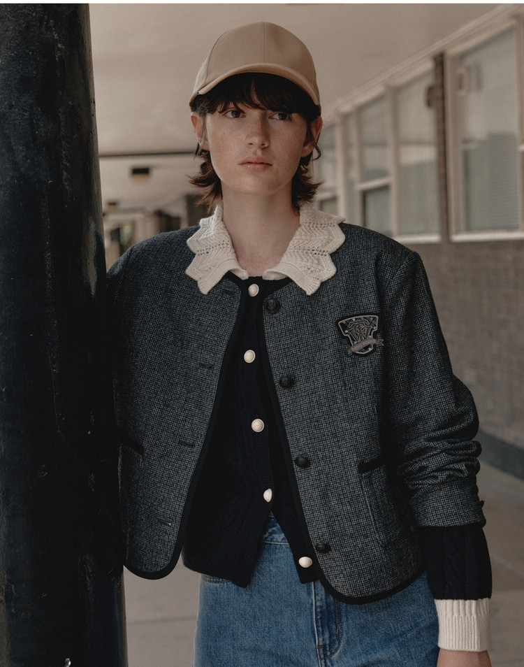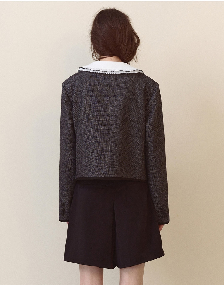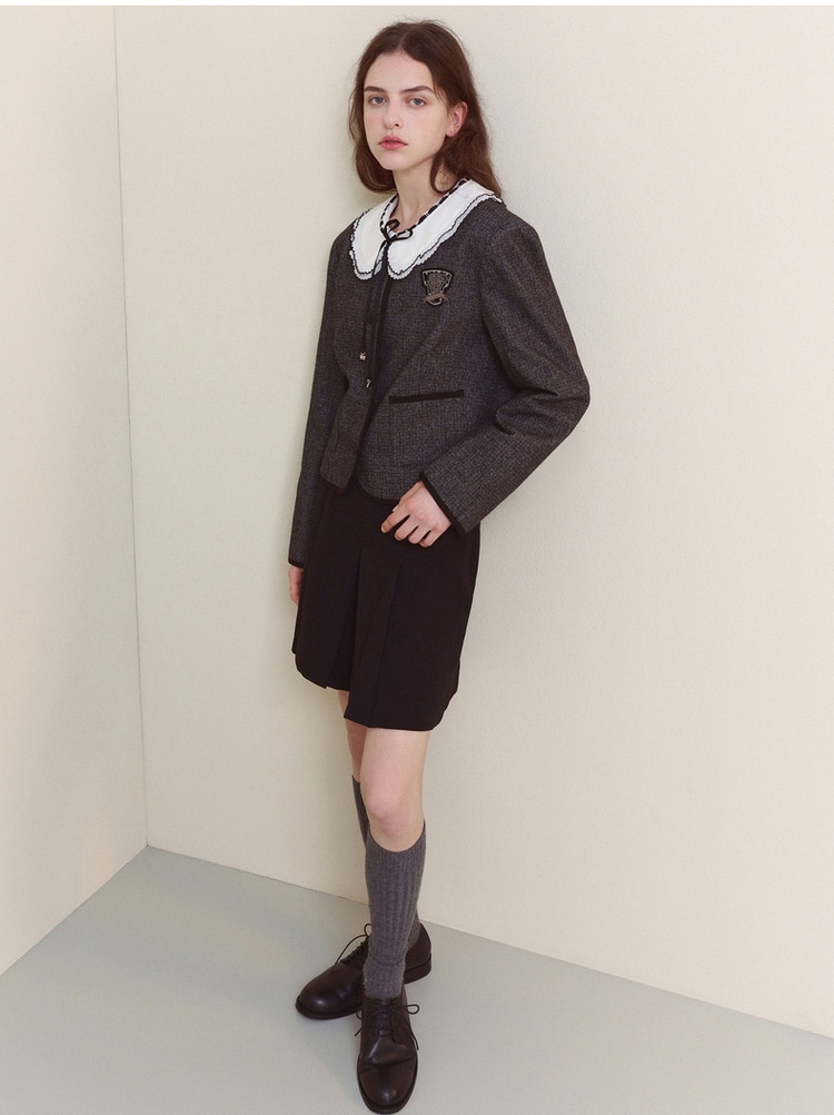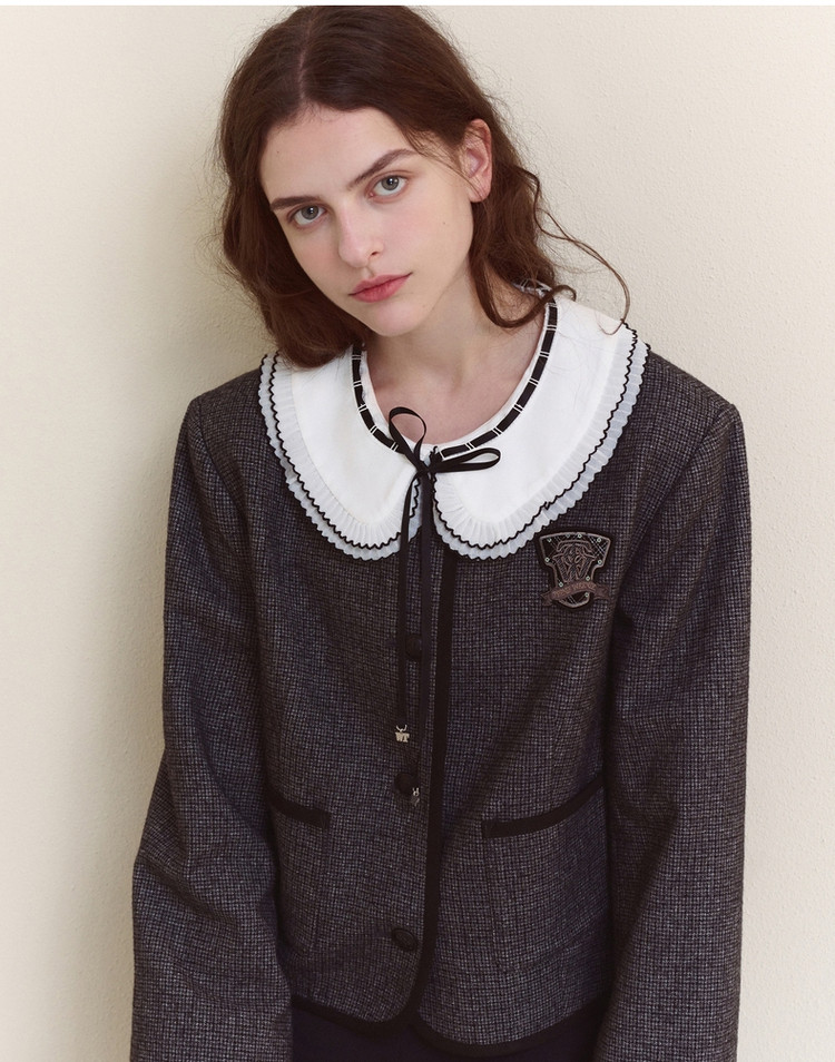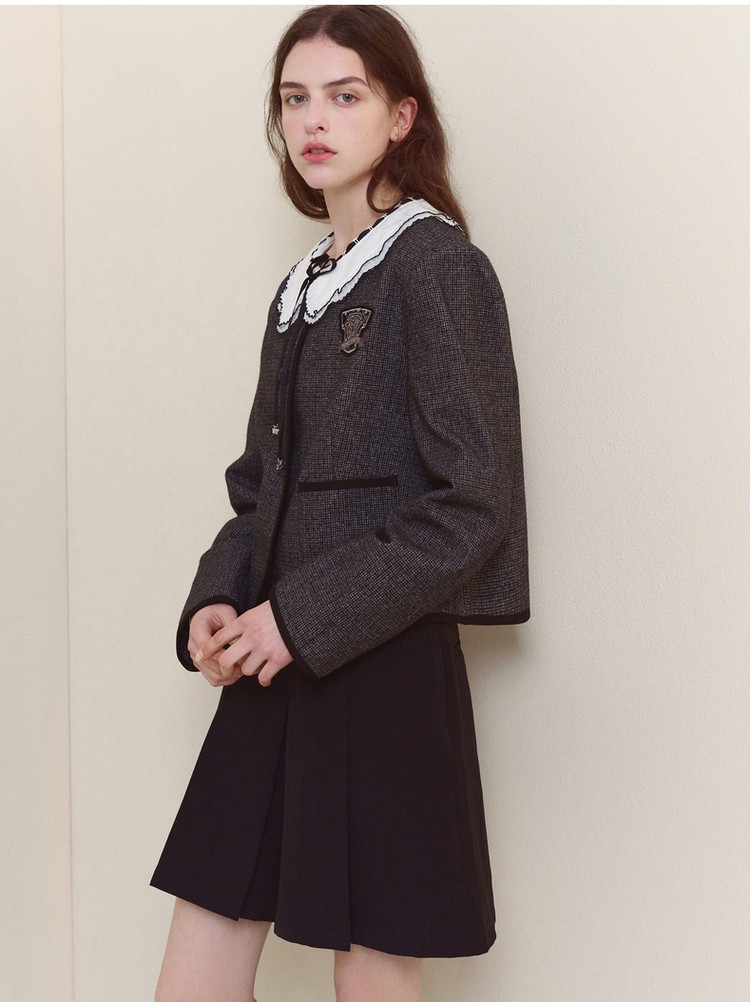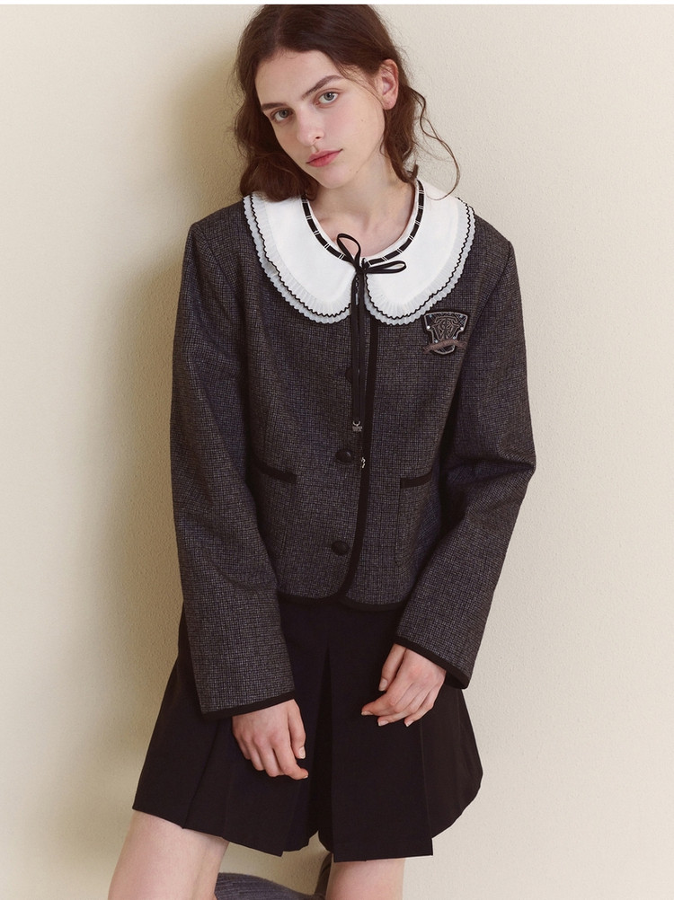 小熊春秋款小香风圆领西服外套气质通勤时尚女装 161601