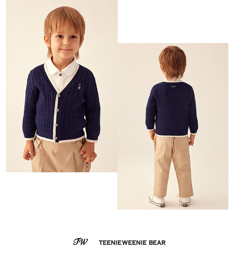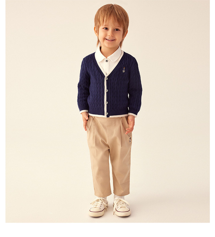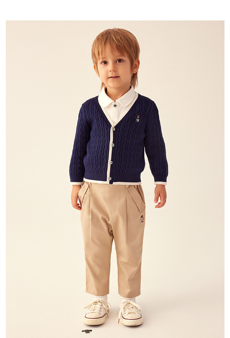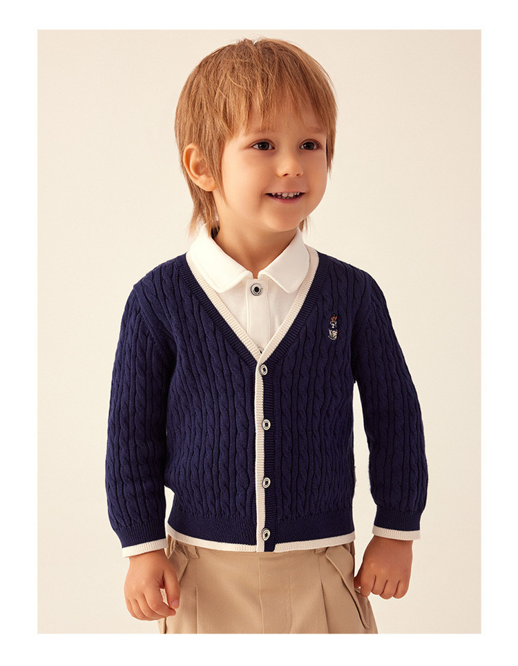 商品名称:小熊童装男宝宝秋季经典麻花纹针织开衫 835585