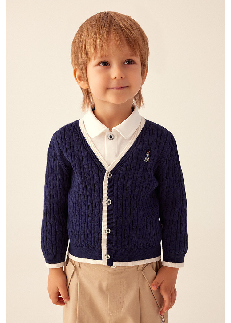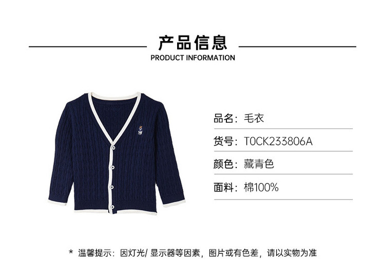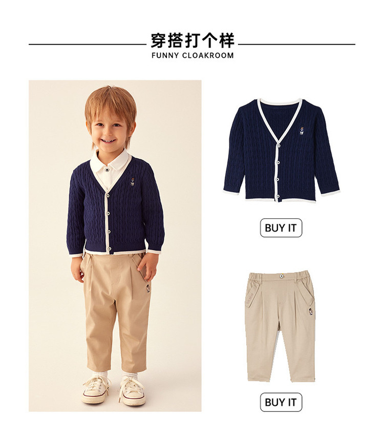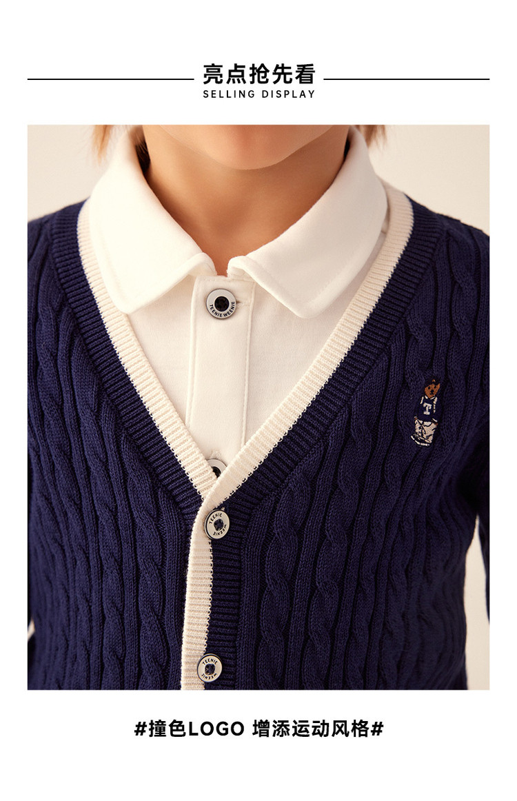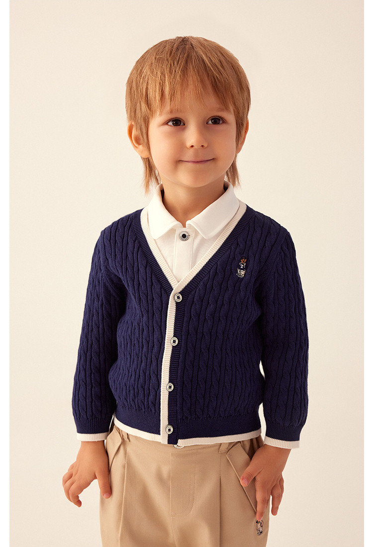 商品名称:小熊童装男宝宝秋季经典麻花纹针织开衫 835585