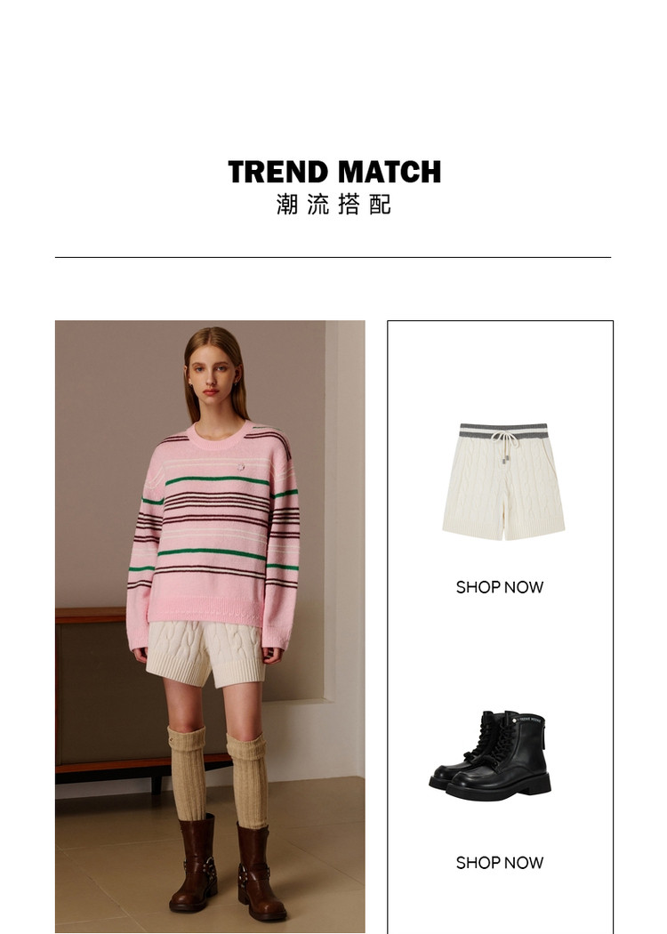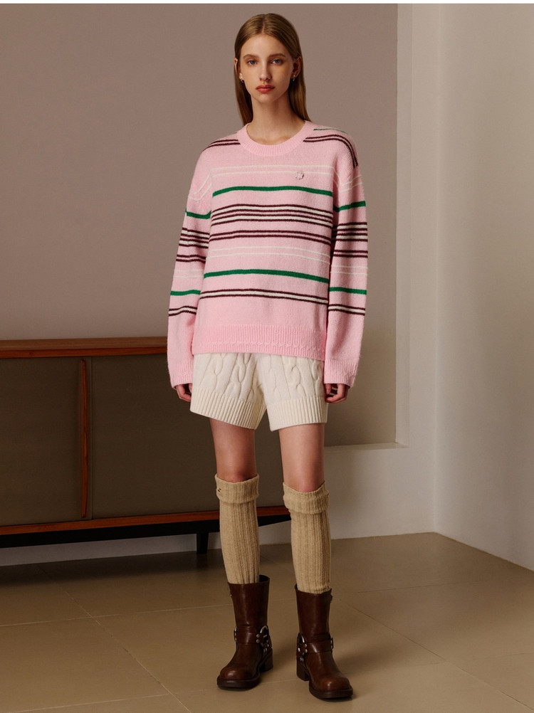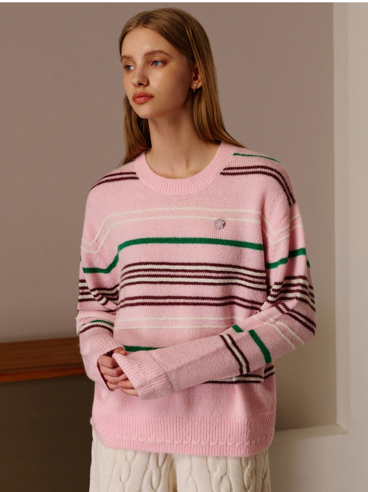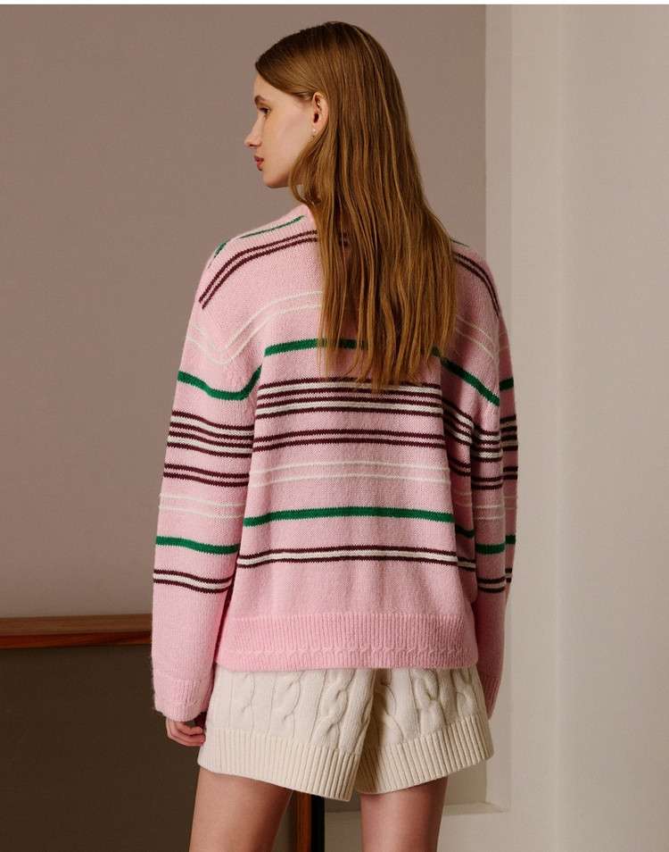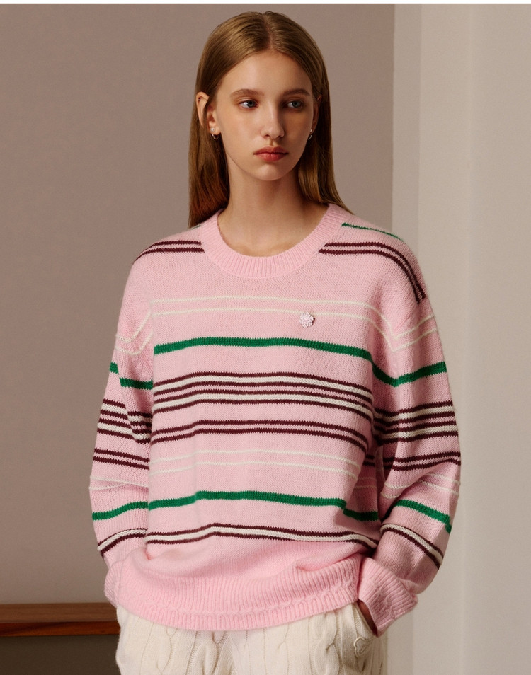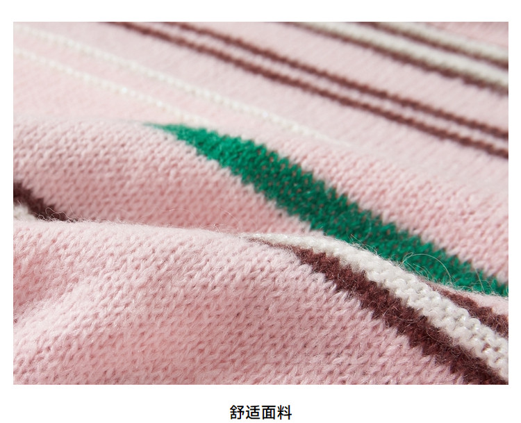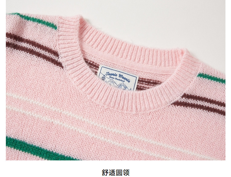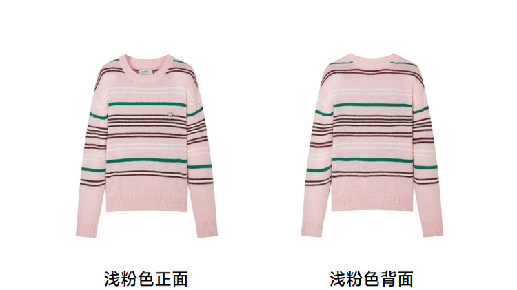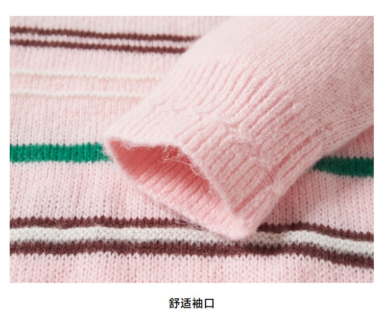 商品名称:小熊春秋款粉色条纹套头毛衣针织衫慵懒风内搭毛衫女 123329