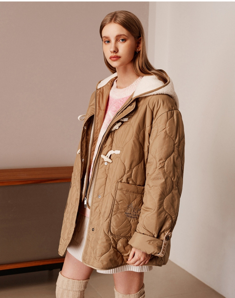 商品名称:女式棉服小熊简约连帽韩版宽松时尚百搭冬季女外套上衣 071617