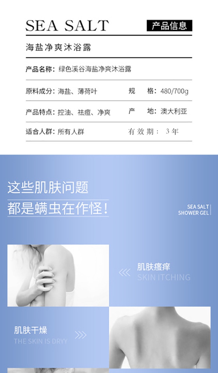 商品名称:绿色溪谷海盐净爽沐浴露 700g