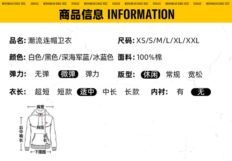 商品名称:Dickies春秋经典男式休闲潮流连帽卫衣 DK010945 817680