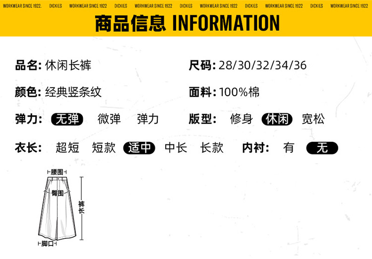 商品名称:Dickies春夏男休闲条纹工装裤长裤 DK011012 977744