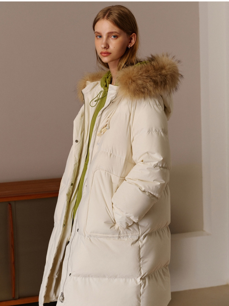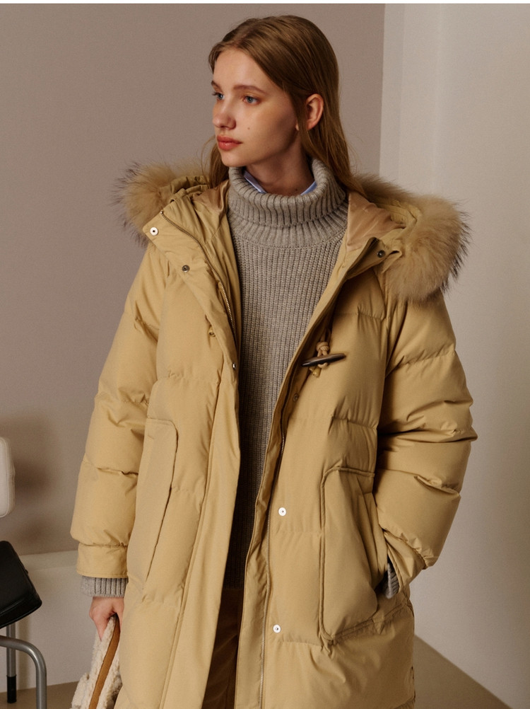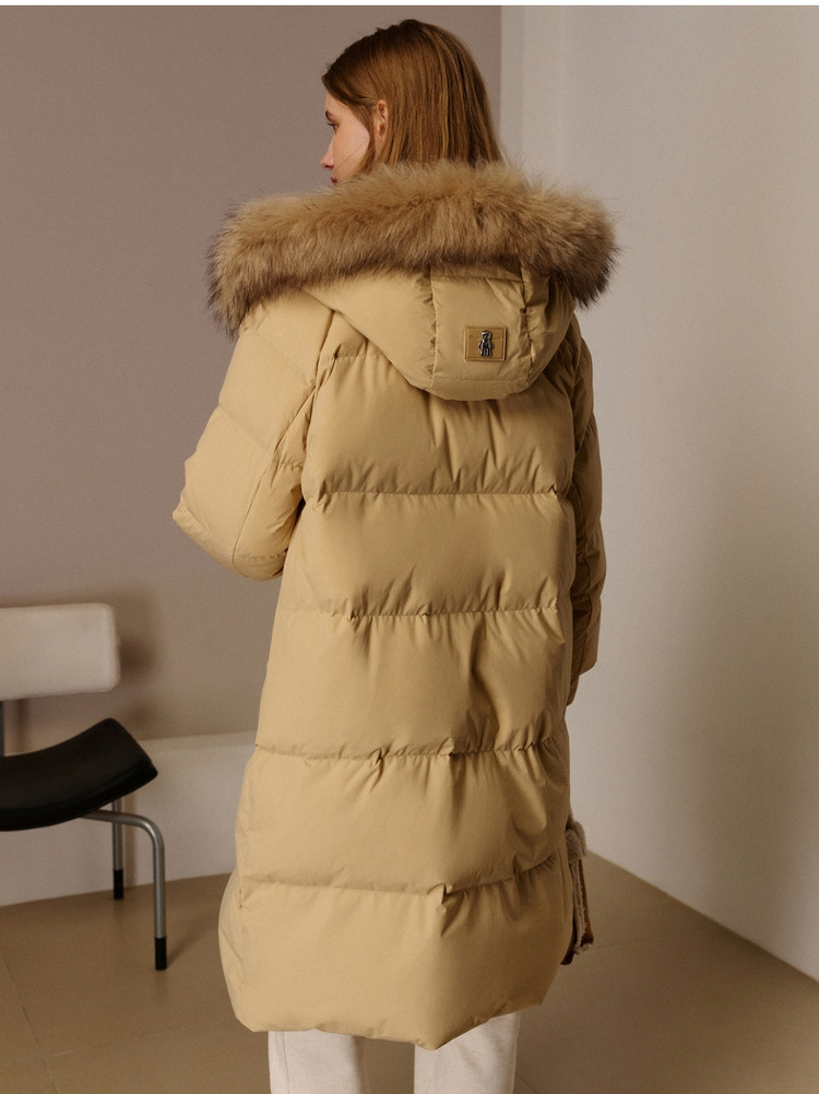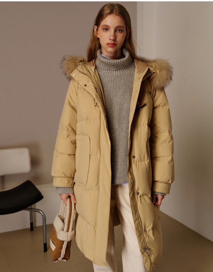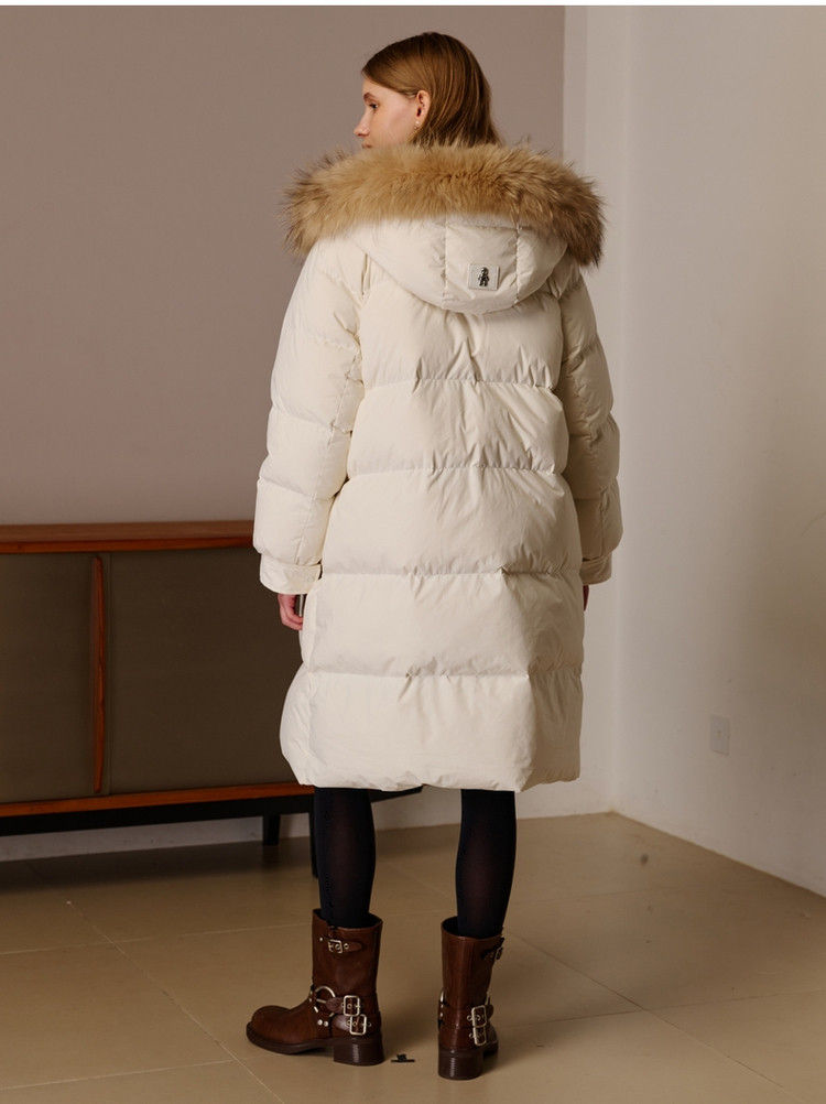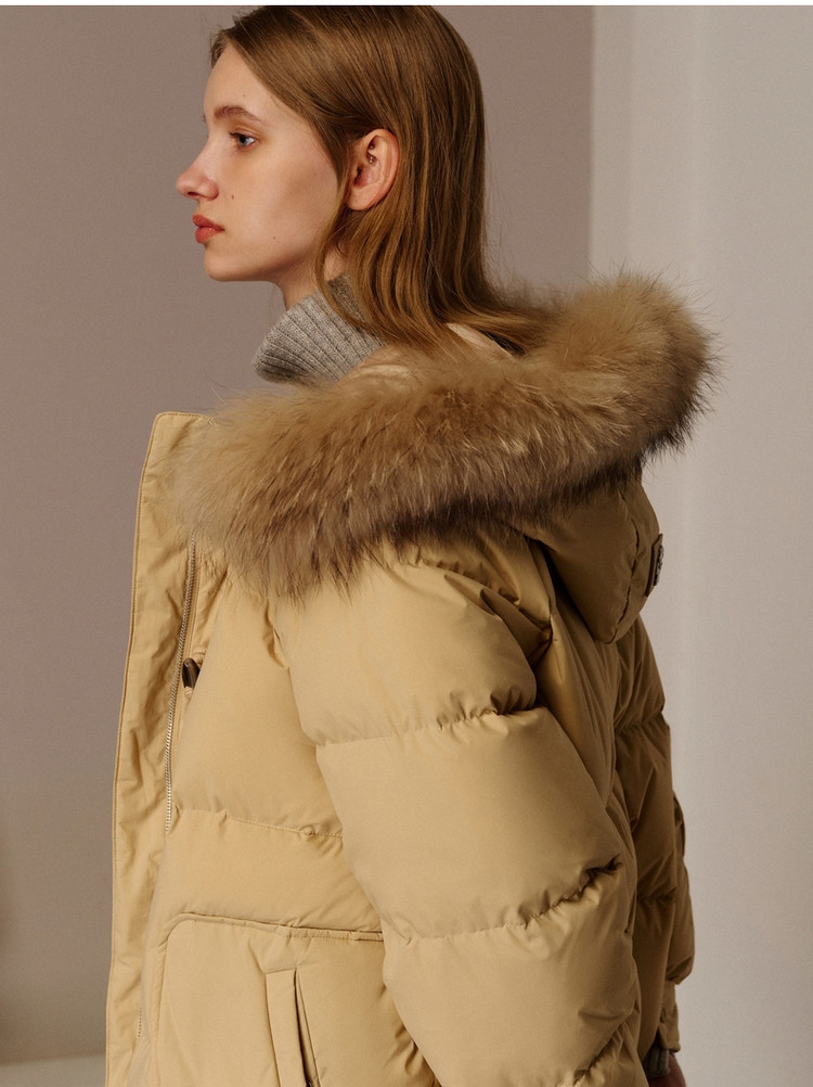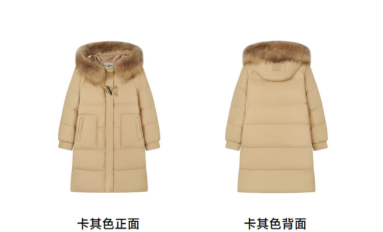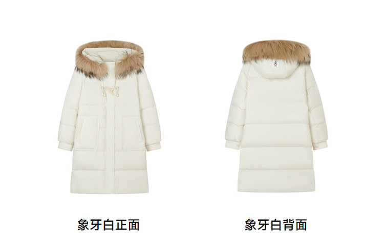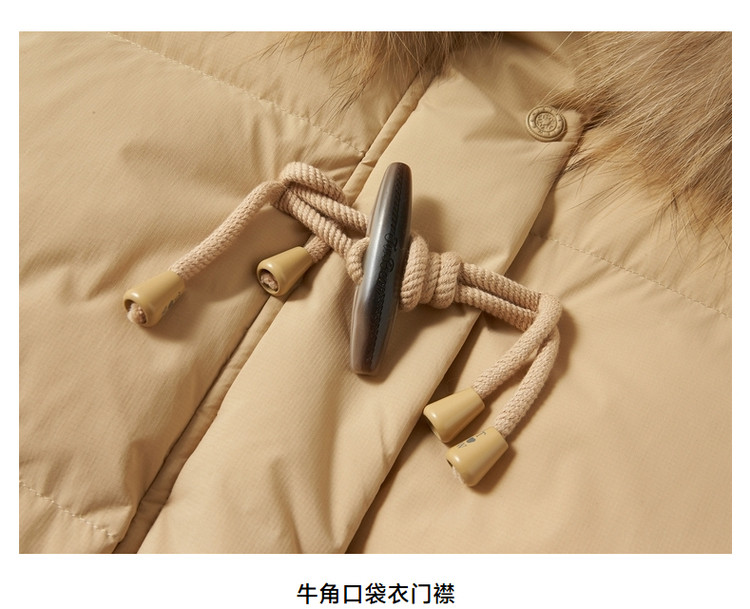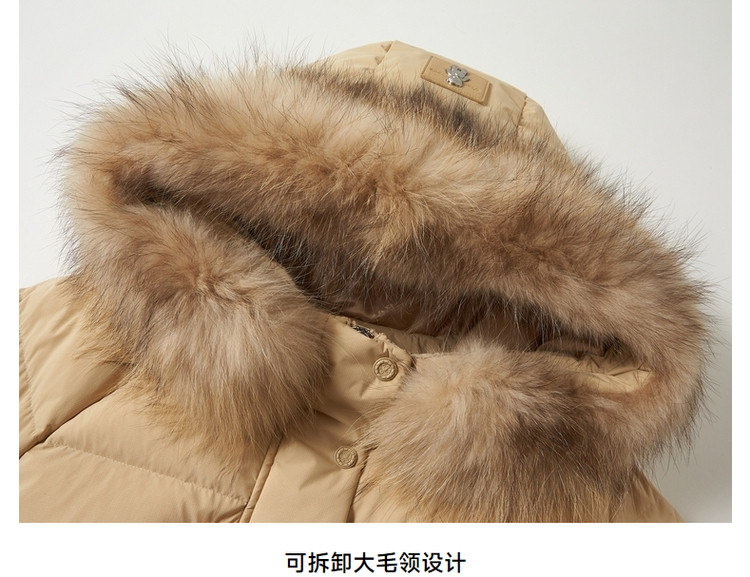 商品名称:小熊女式蓬松大毛领羽绒服冬季简约中长款连帽保暖加厚羽绒外套女 546433
