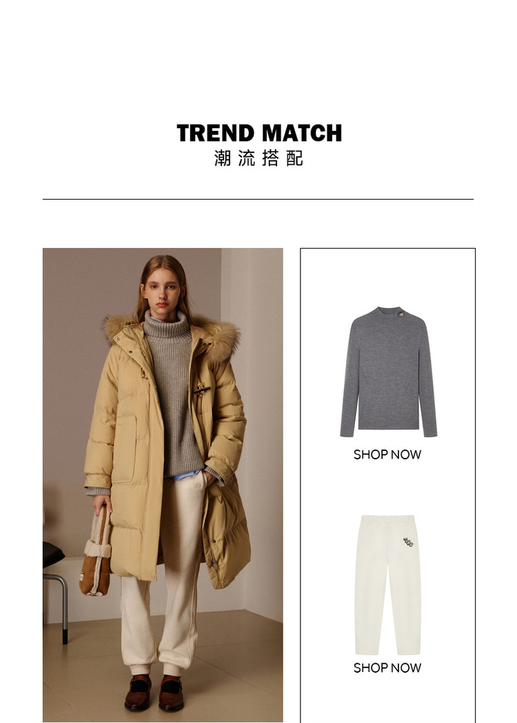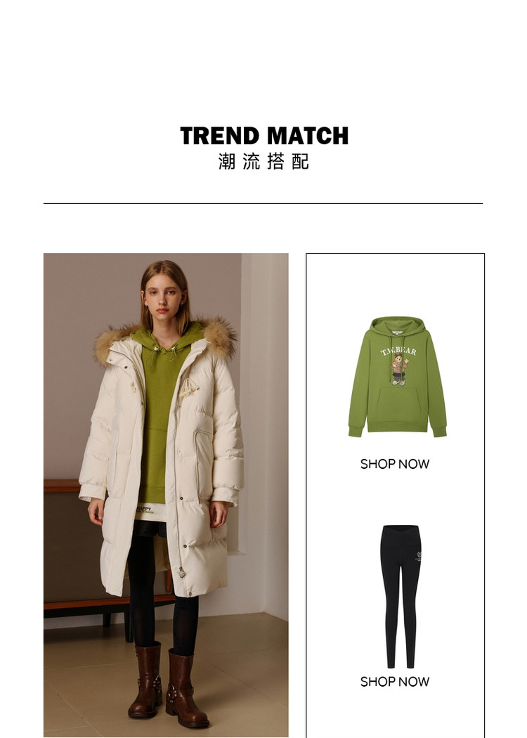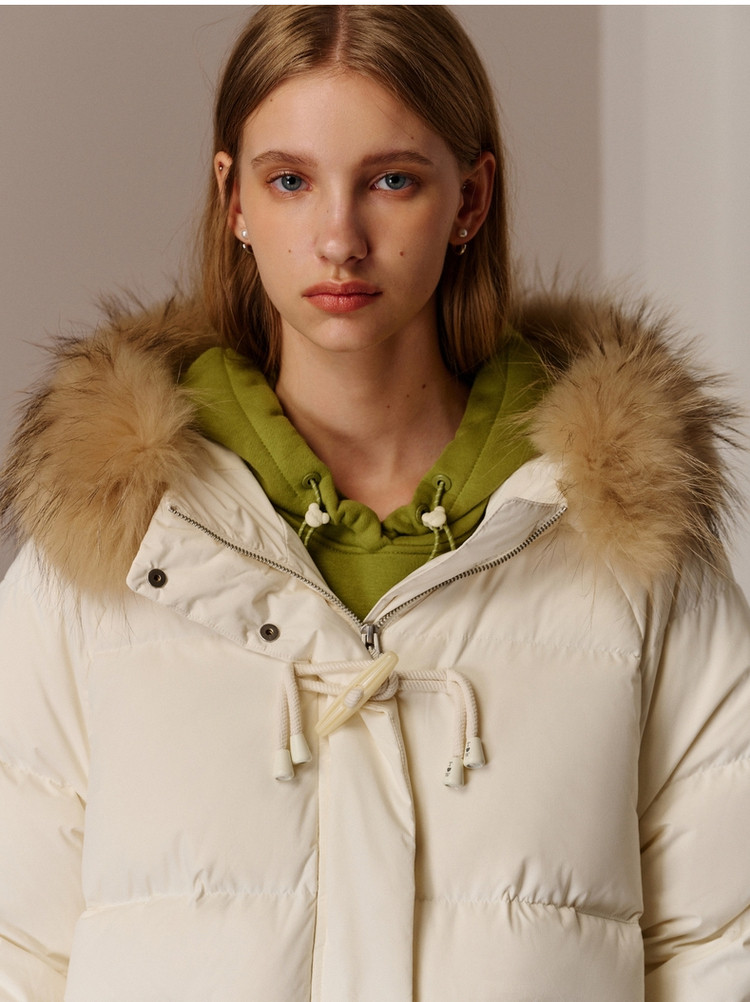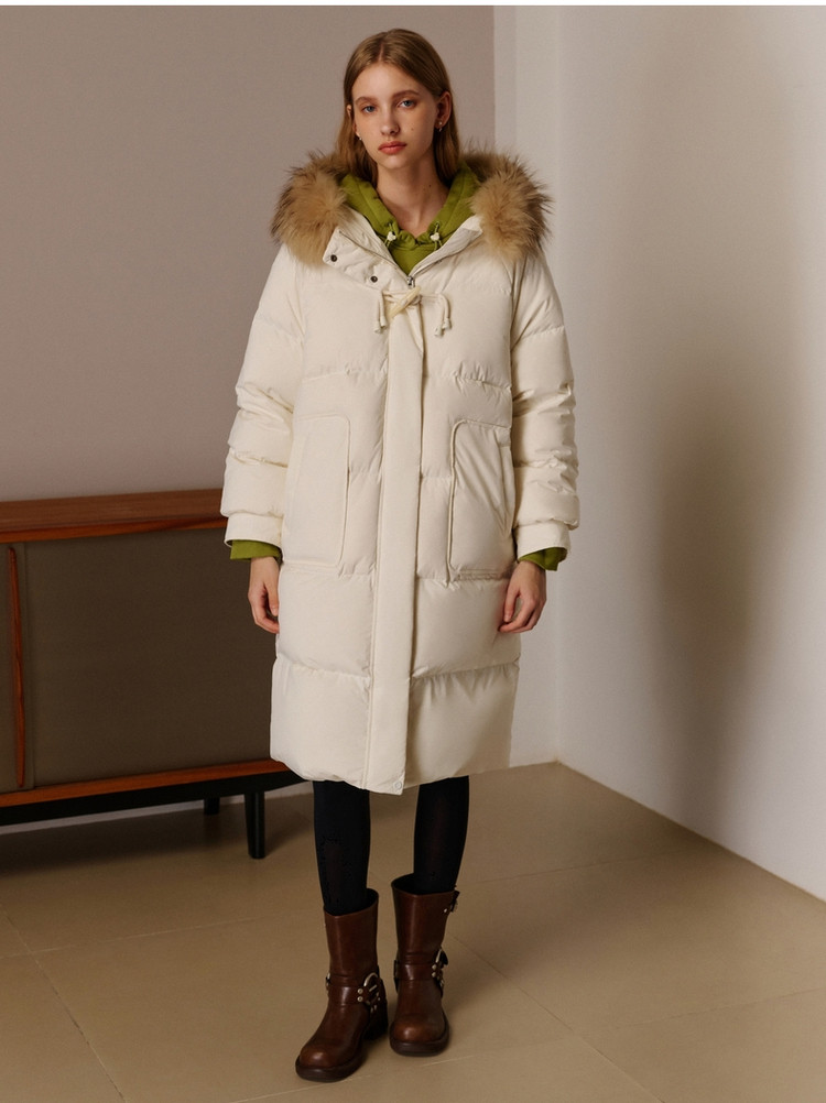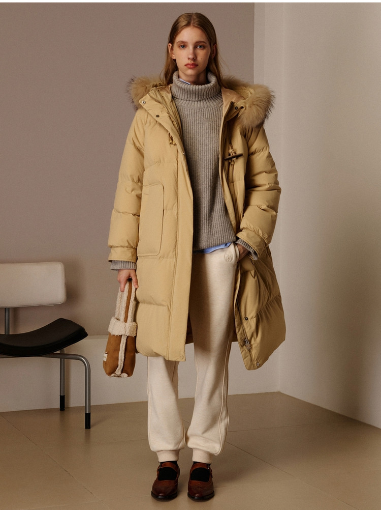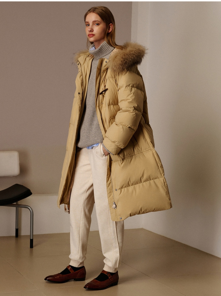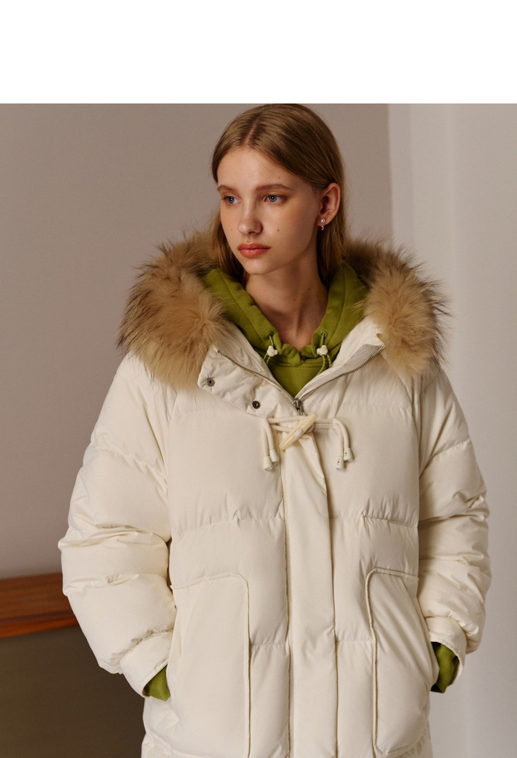 商品名称:小熊女式蓬松大毛领羽绒服冬季简约中长款连帽保暖加厚羽绒外套女 546433