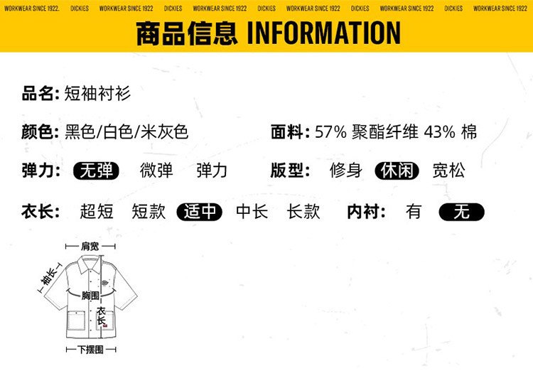 商品名称:Dickies艺术字母印花男式休闲衬衫 DK010314 578896