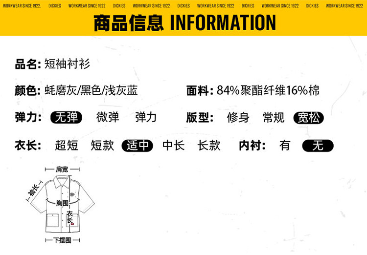 商品名称:Dickies百搭基础款LOGO短袖衬衫 DK010977 705872