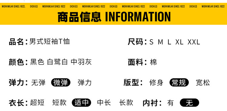 商品名称:Dickies字母LOGO印花男式短袖T恤 DK012606 398672