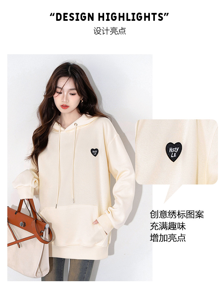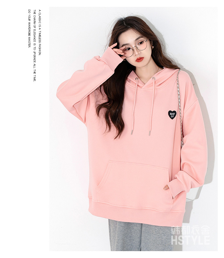商品名称:【舒适卫衣】春季款特色爱心刺绣上衣连帽宽松显瘦百搭女式卫衣 486283