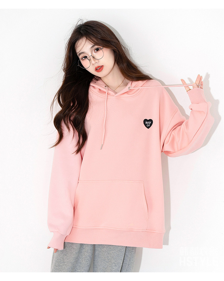 【舒适卫衣】春季款特色爱心刺绣上衣连帽宽松显瘦百搭女式卫衣 486283