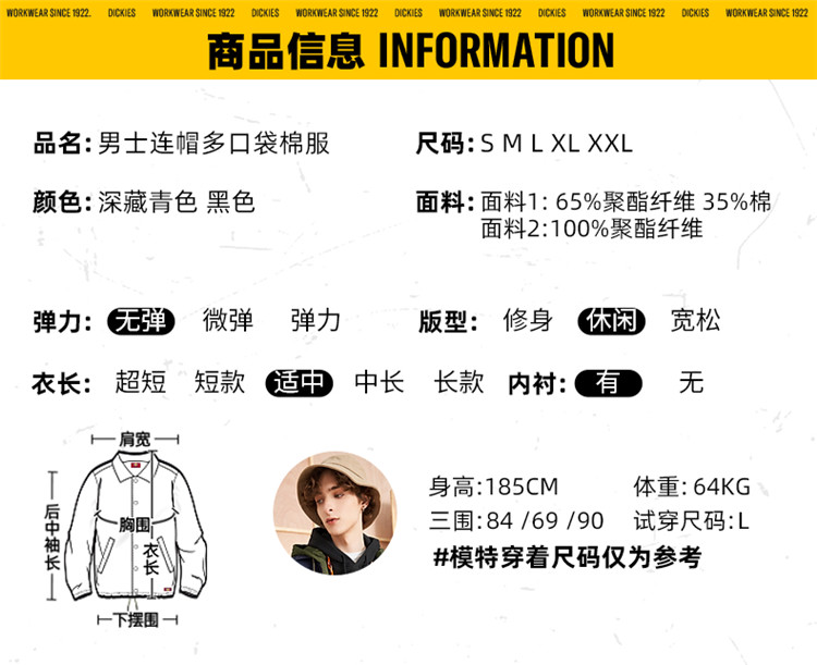 商品名称:Dickies男式秋冬假两件连帽多口袋棉服 DK009438 138896