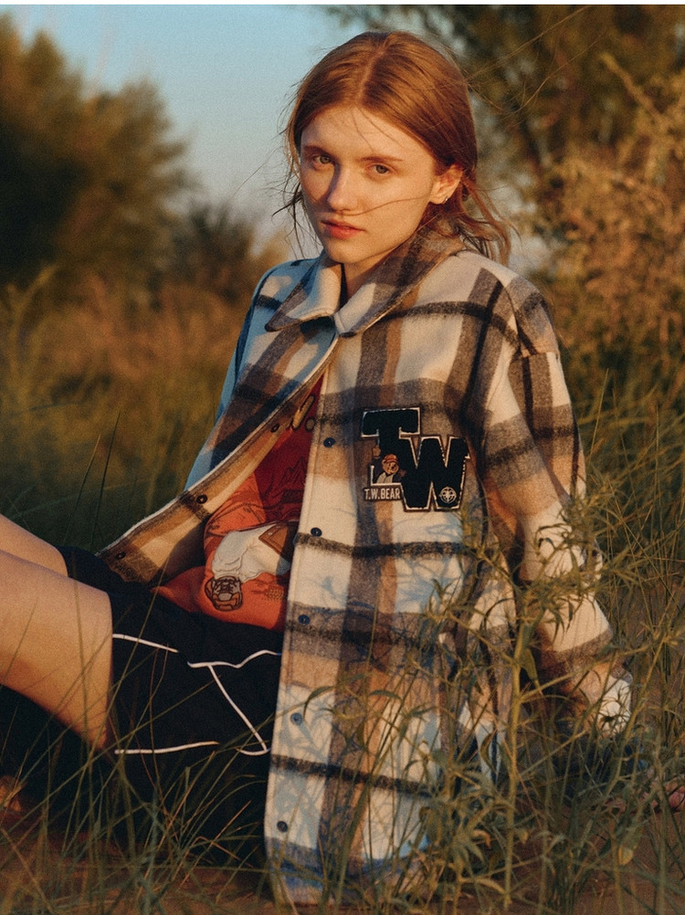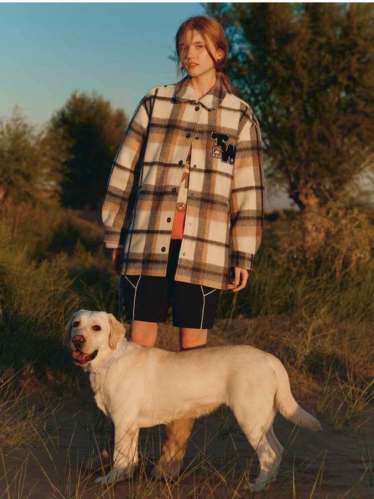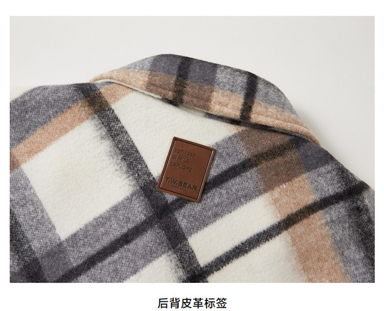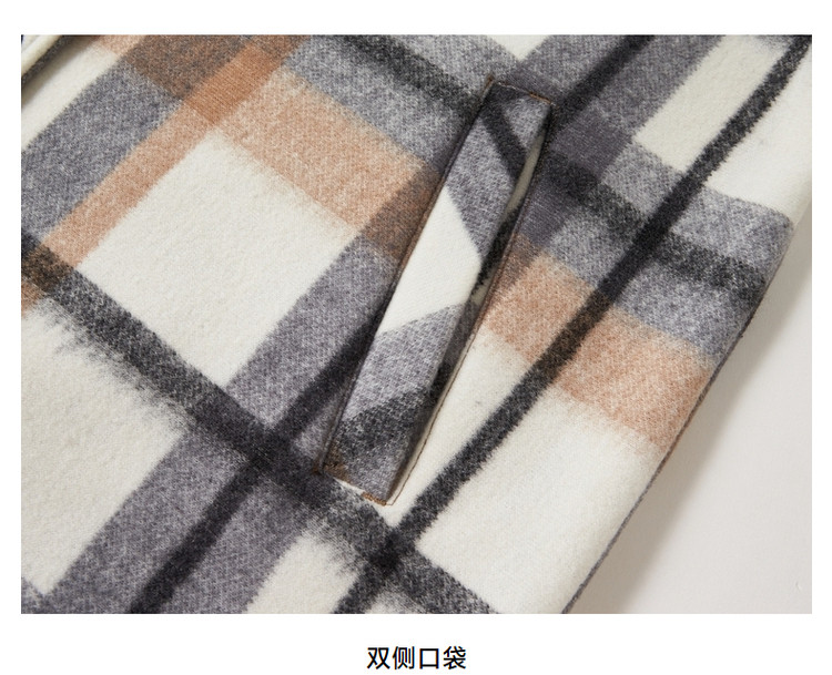 商品名称:小熊冬季复古格纹毛呢呢子大衣外套小个子韩系好看女 635585