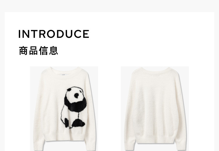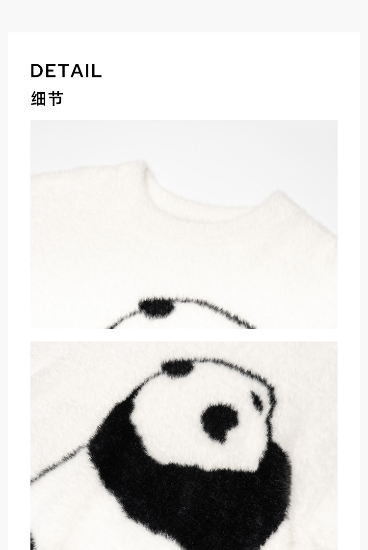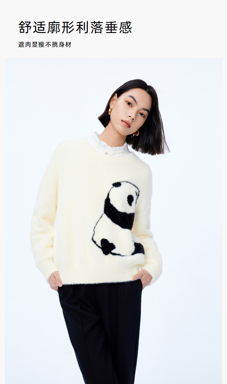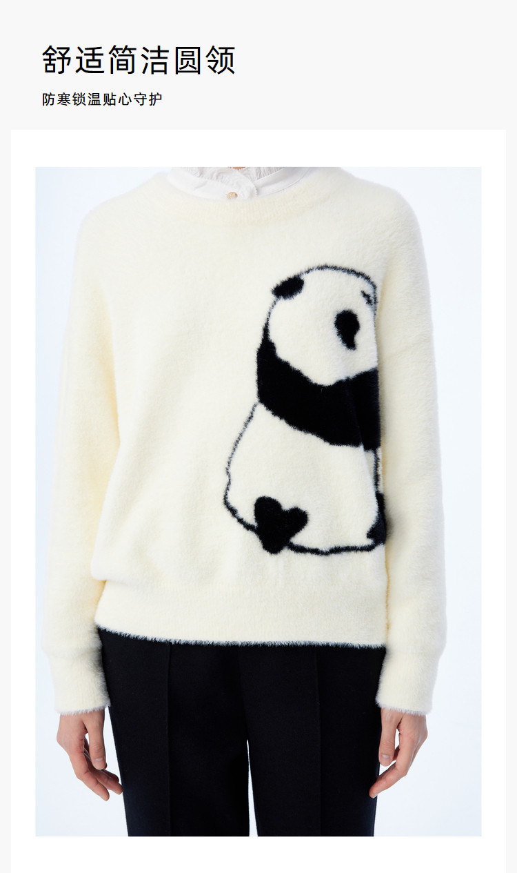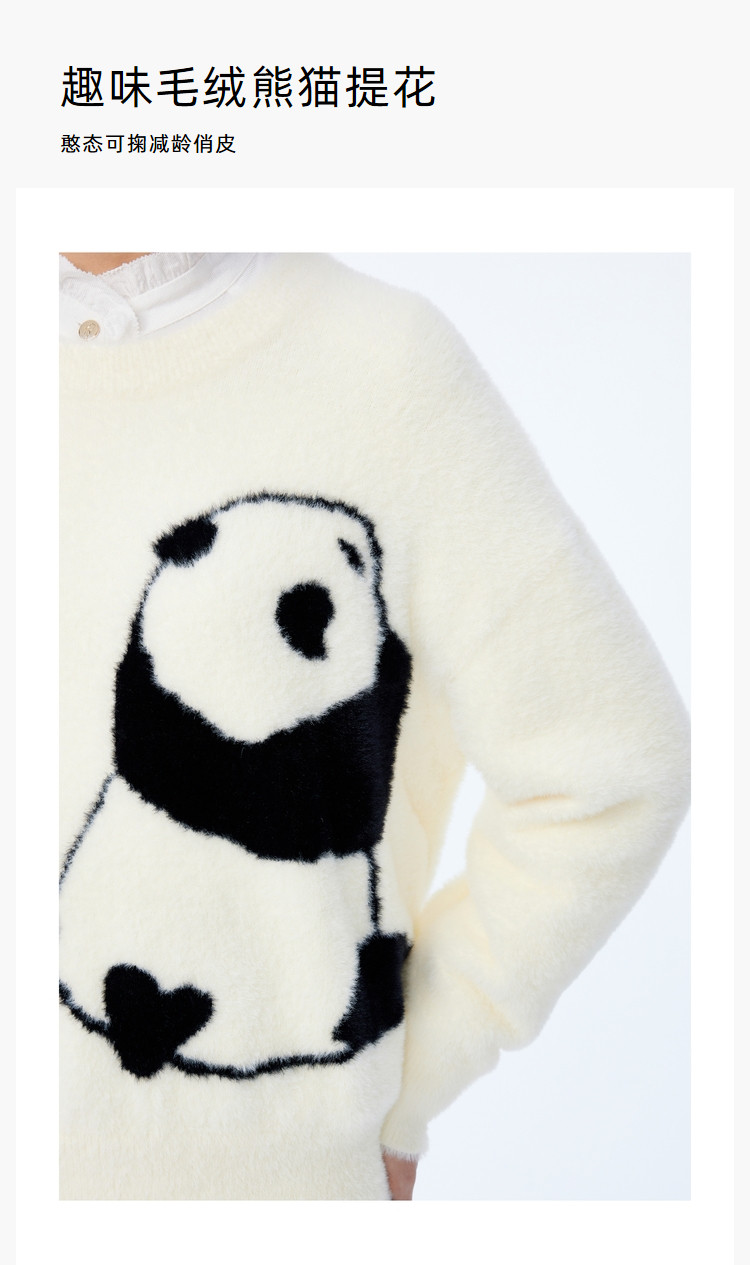 商品名称:初春季温柔毛绒趣味减龄熊猫提花宽松落肩毛衣上衣女 495259