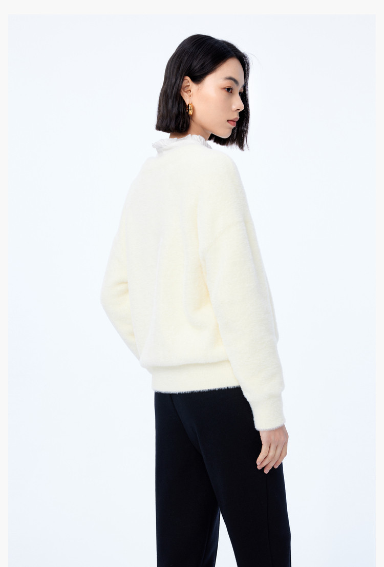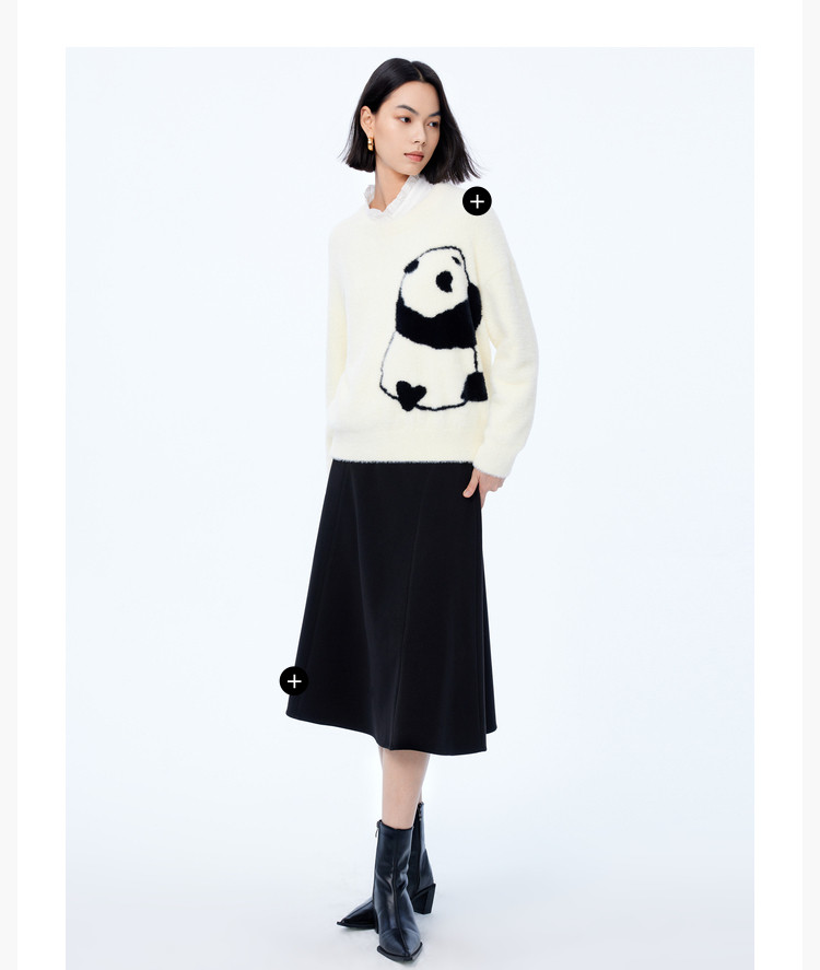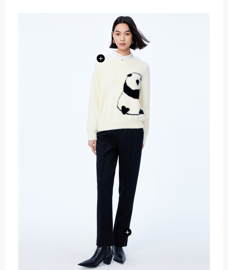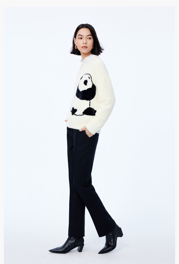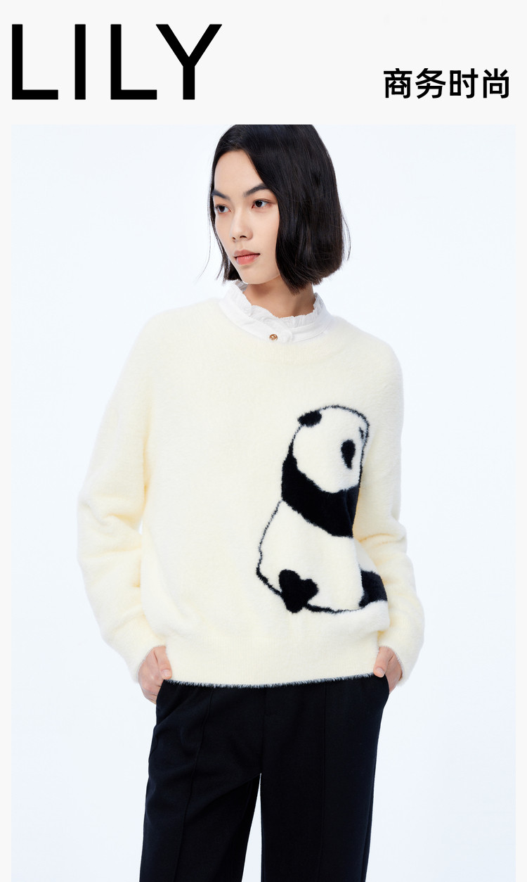 商品名称:初春季温柔毛绒趣味减龄熊猫提花宽松落肩毛衣上衣女 495259