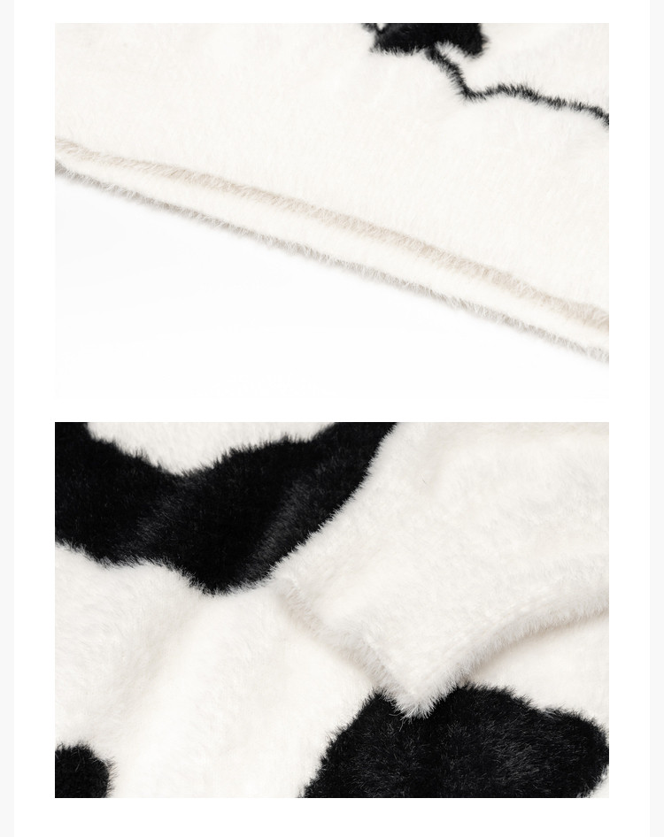 初春季温柔毛绒趣味减龄熊猫提花宽松落肩毛衣上衣女 495259