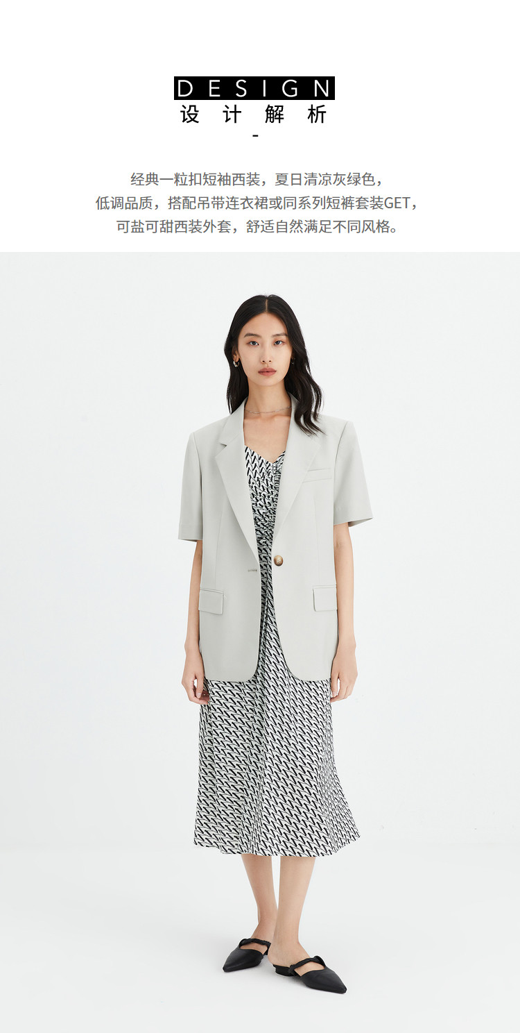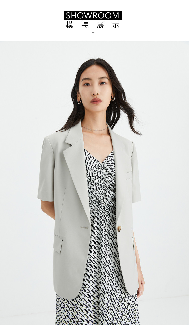 商品名称:【商场同款】春季西服女薄外套垂坠感时尚通勤一粒扣短袖西装外套 165851