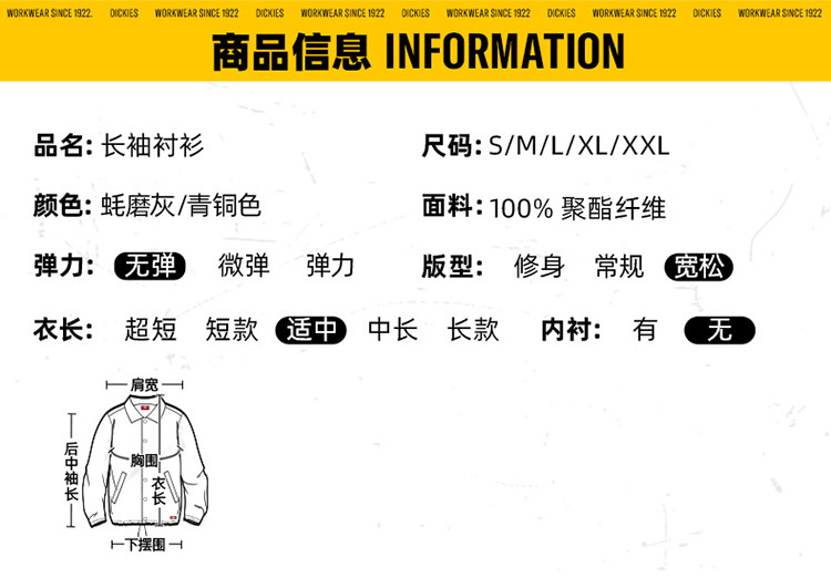 商品名称:Dickies春夏季男式多口袋长袖衬衫 DK010969 988944