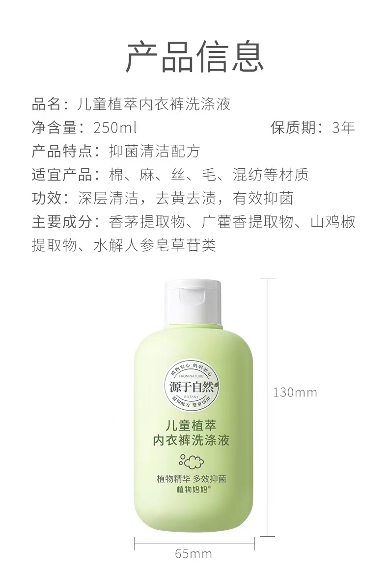 商品名称:植物妈妈儿童植萃内衣裤洗涤液250ml*2儿童植萃内衣裤洗涤液
