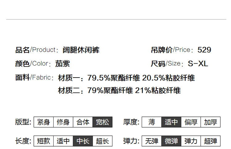 商品名称:【简约风阔腿裤】春秋直筒长裤女裤宽松休闲裤子女 302017