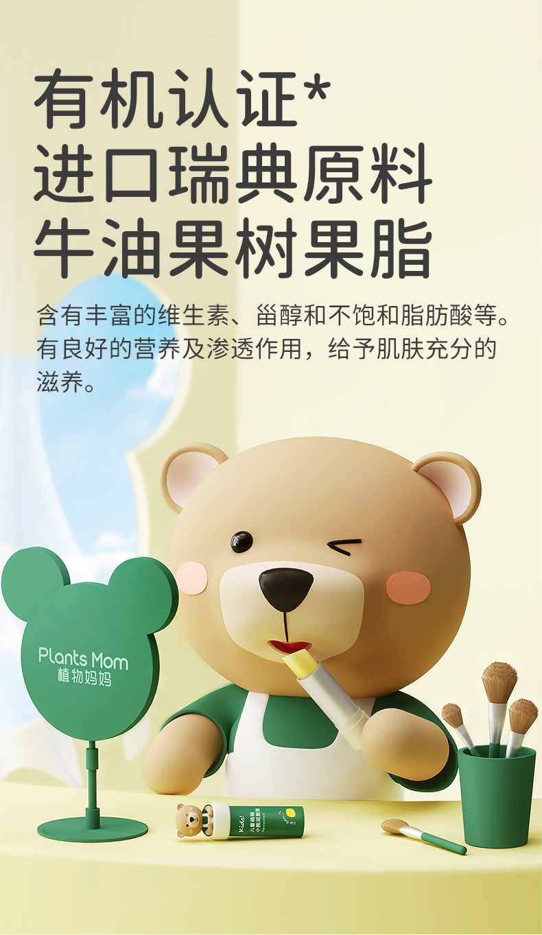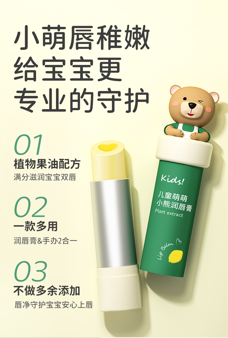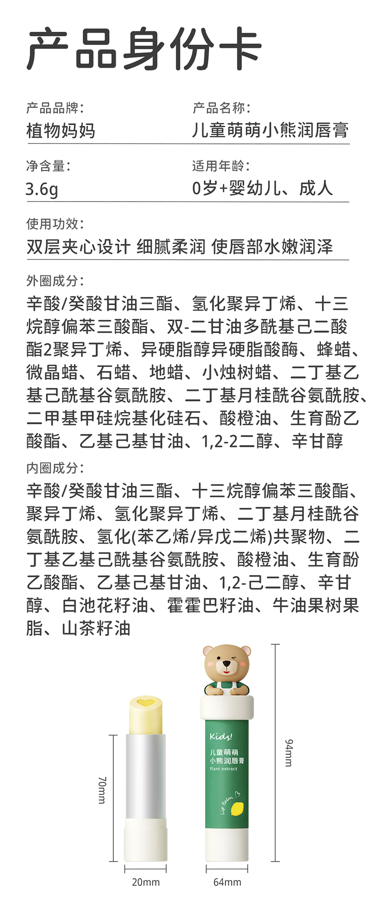 商品名称:植物妈妈儿童萌萌小熊润唇膏3.6g女孩男孩宝宝婴儿润唇膏滋润保湿孕妇可用