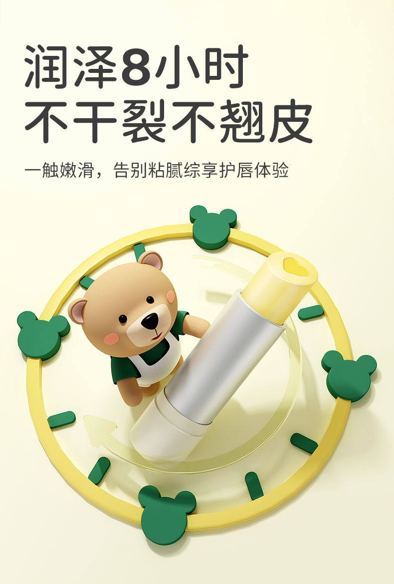 植物妈妈儿童萌萌小熊润唇膏3.6g女孩男孩宝宝婴儿润唇膏滋润保湿孕妇可用