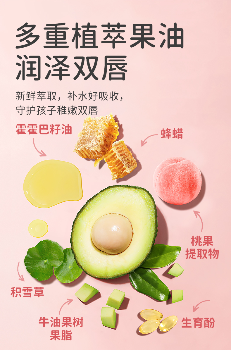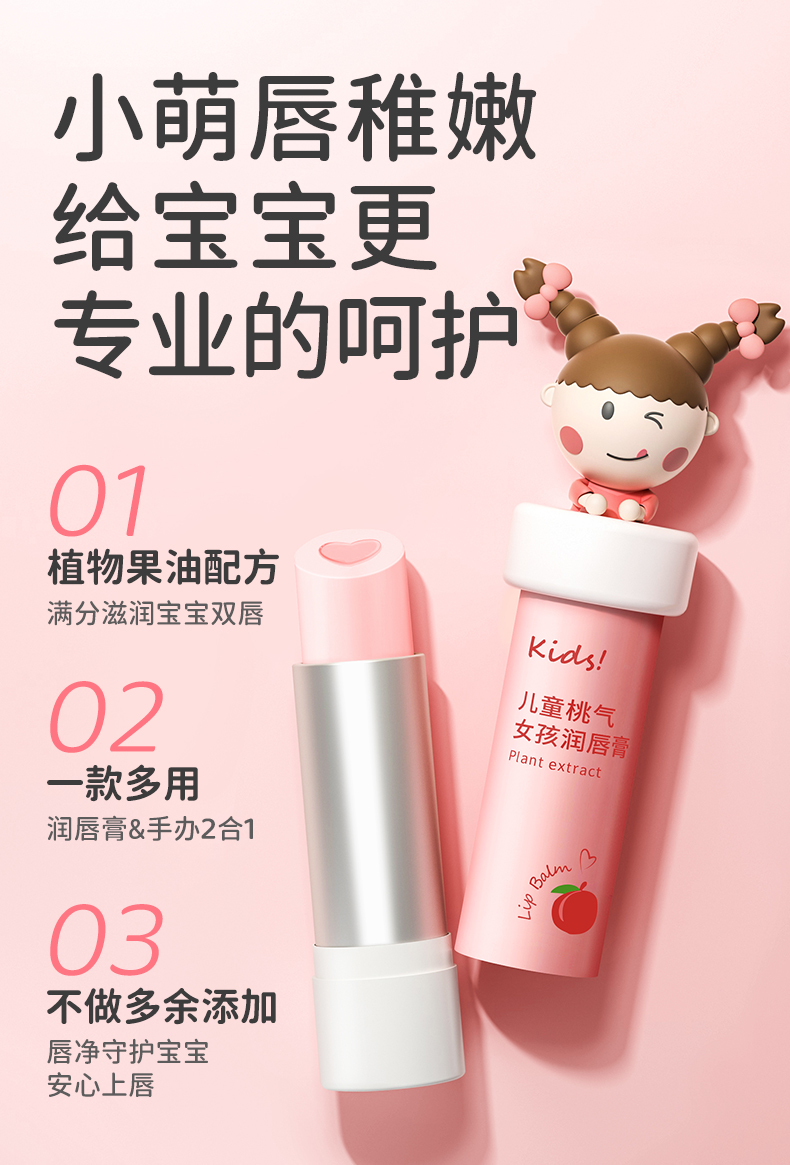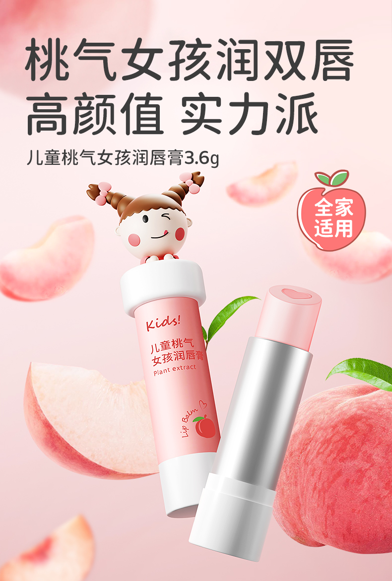 植物妈妈桃气女孩润唇膏3.6g小女孩专用宝宝润唇膏滋润保湿防干裂孕妇可用