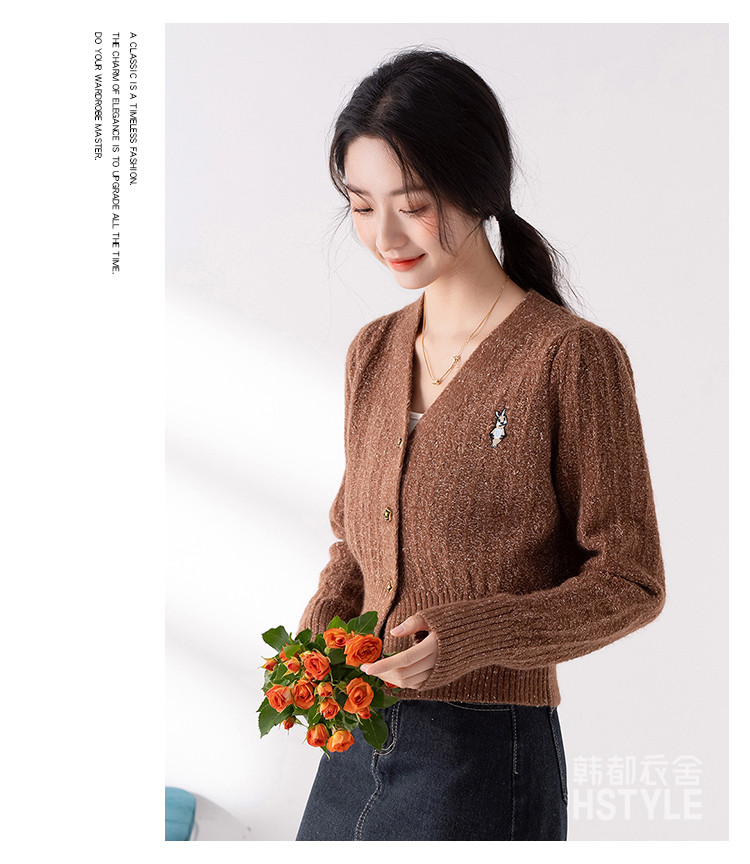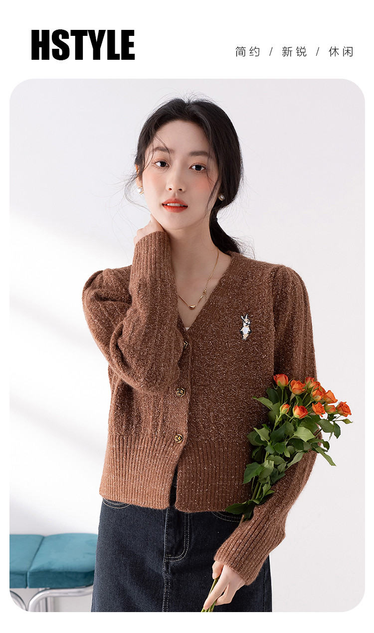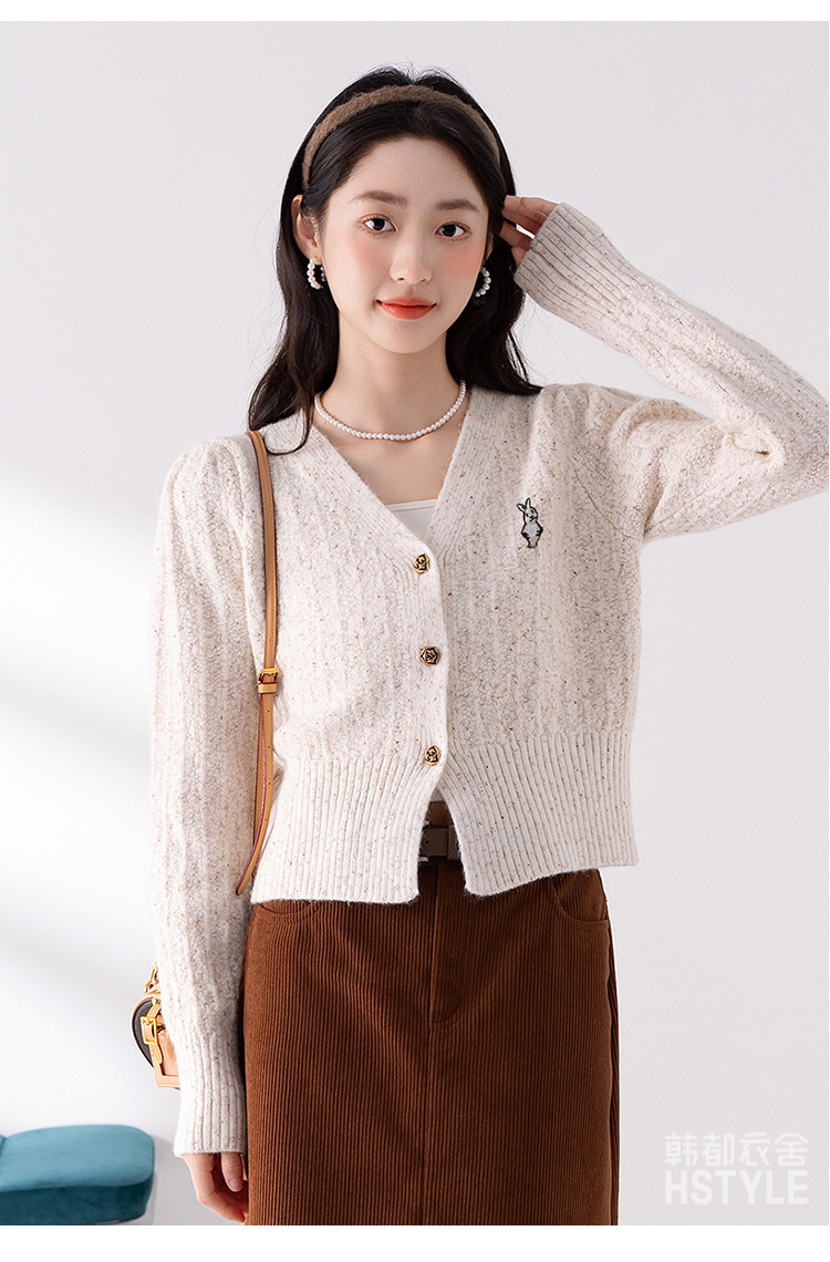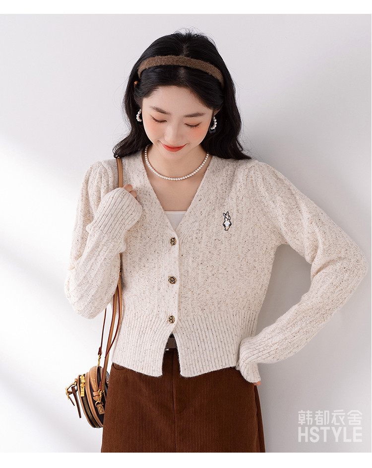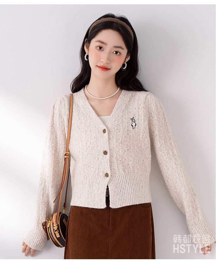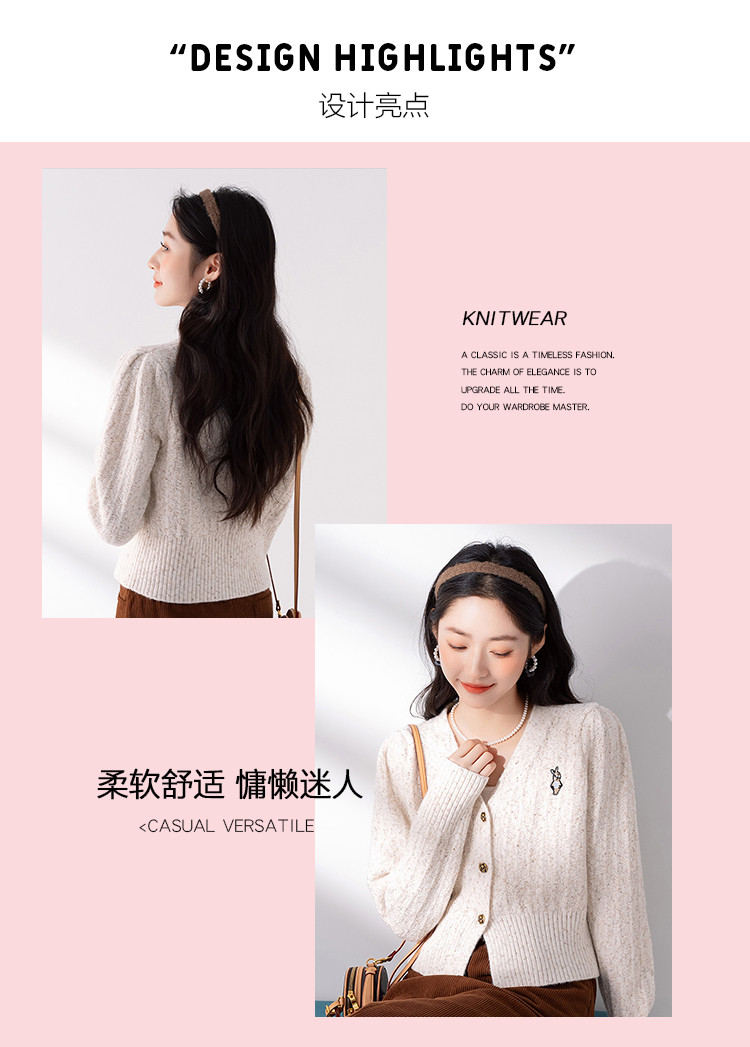 商品名称:【V领腰部修身显瘦开衫女】春季款短款女式针织衫长袖上衣女外套 315787