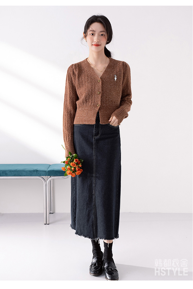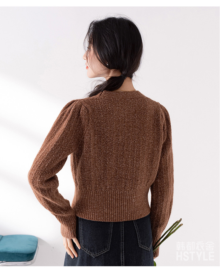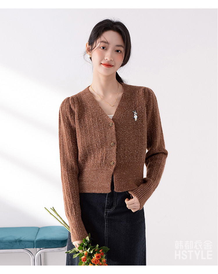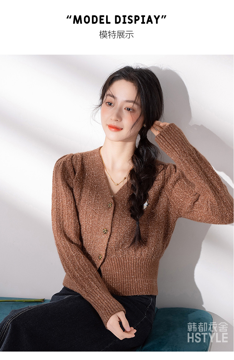【V领腰部修身显瘦开衫女】春季款短款女式针织衫长袖上衣女外套 315787