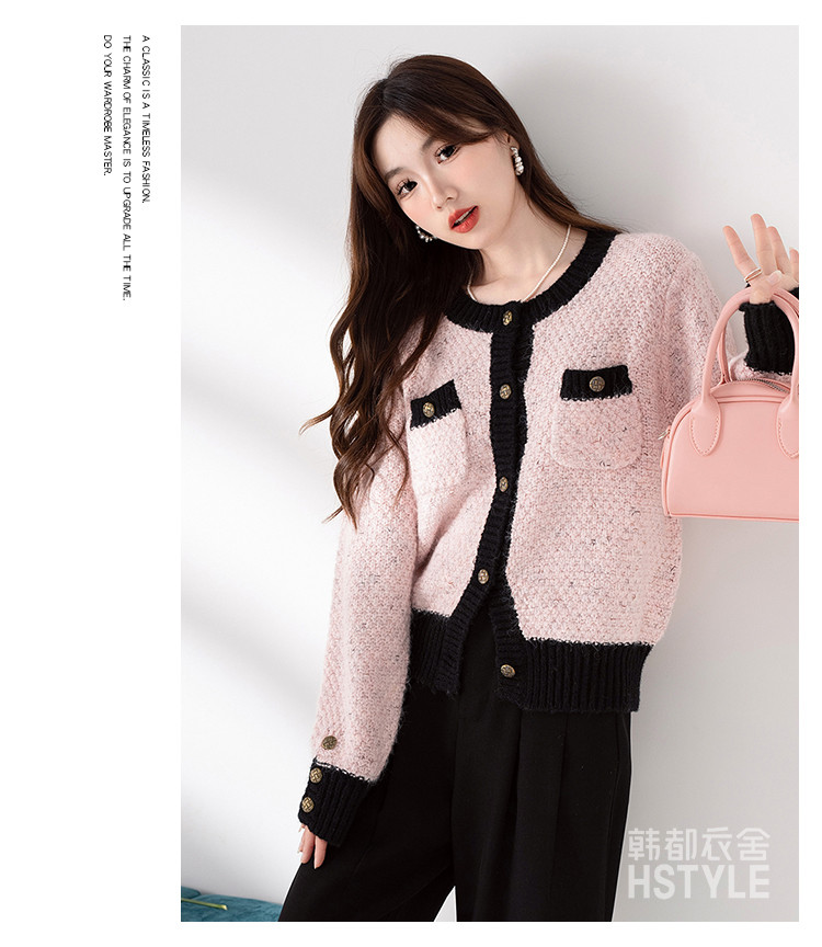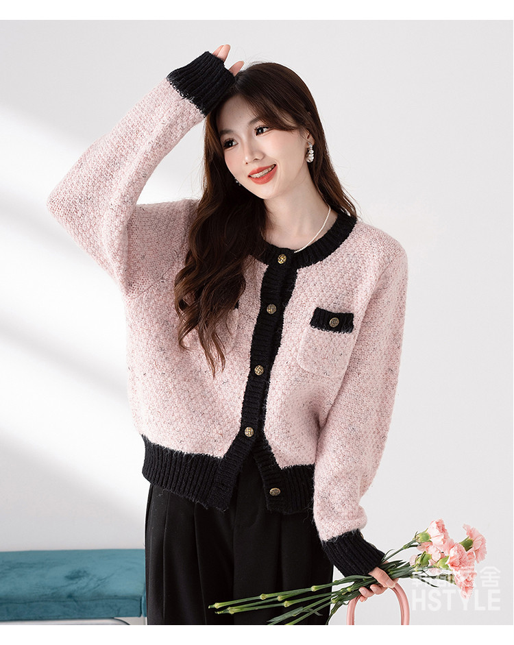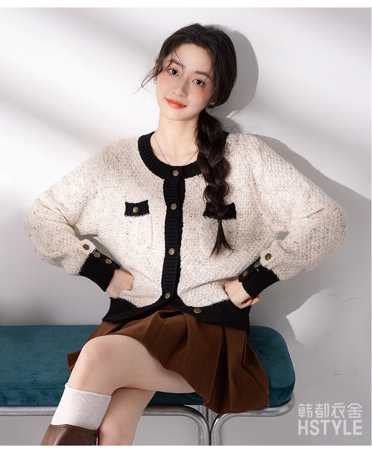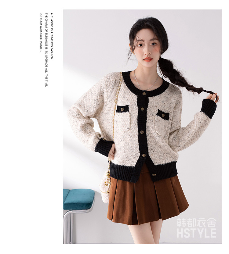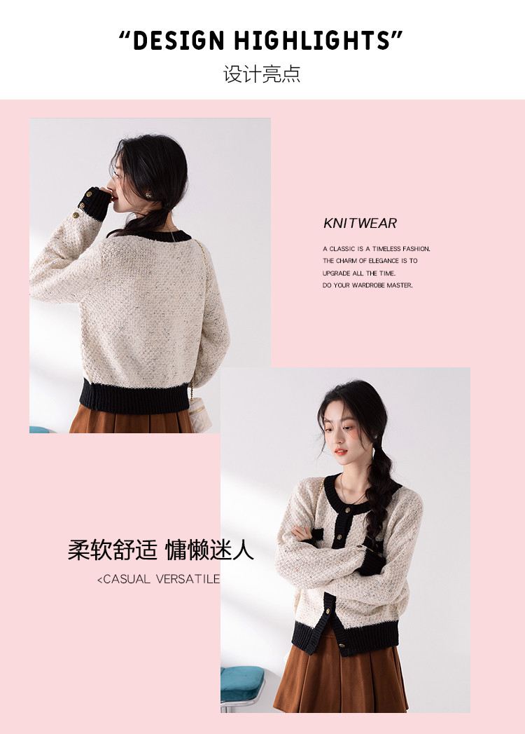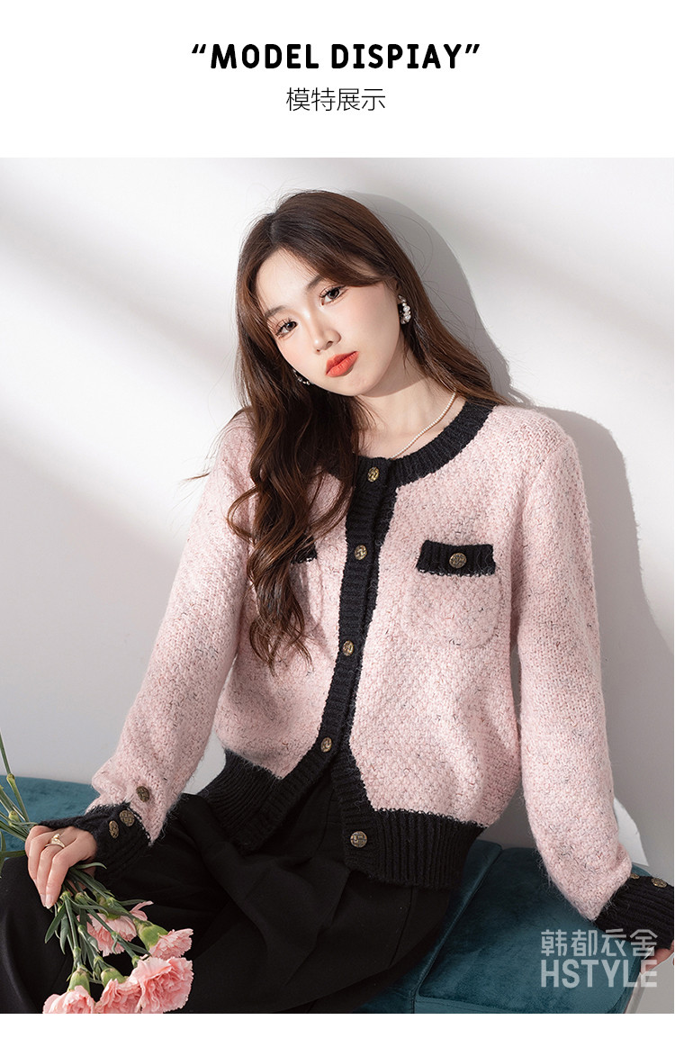 商品名称:【短款法式小香风开衫女】春季款淑女撞色上衣长袖温柔女式针织衫 156043