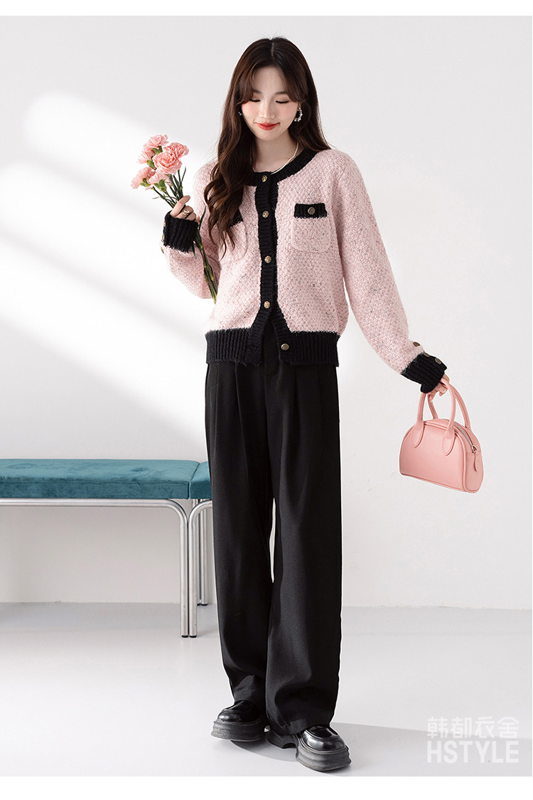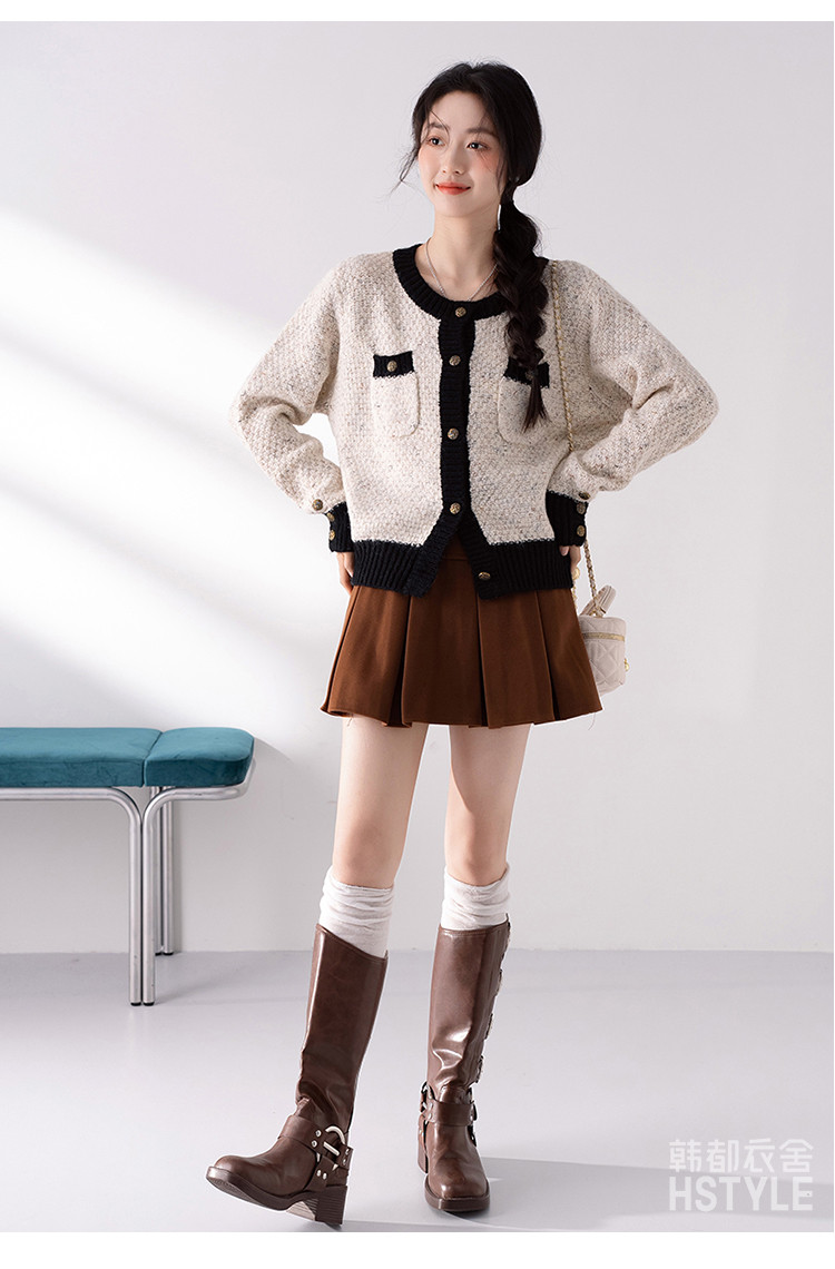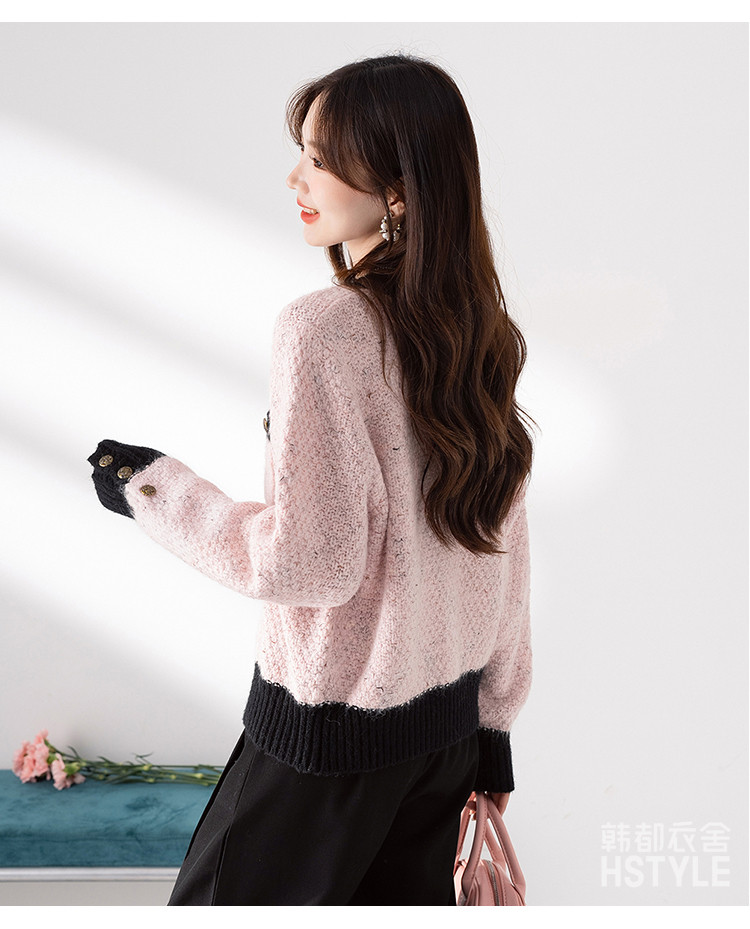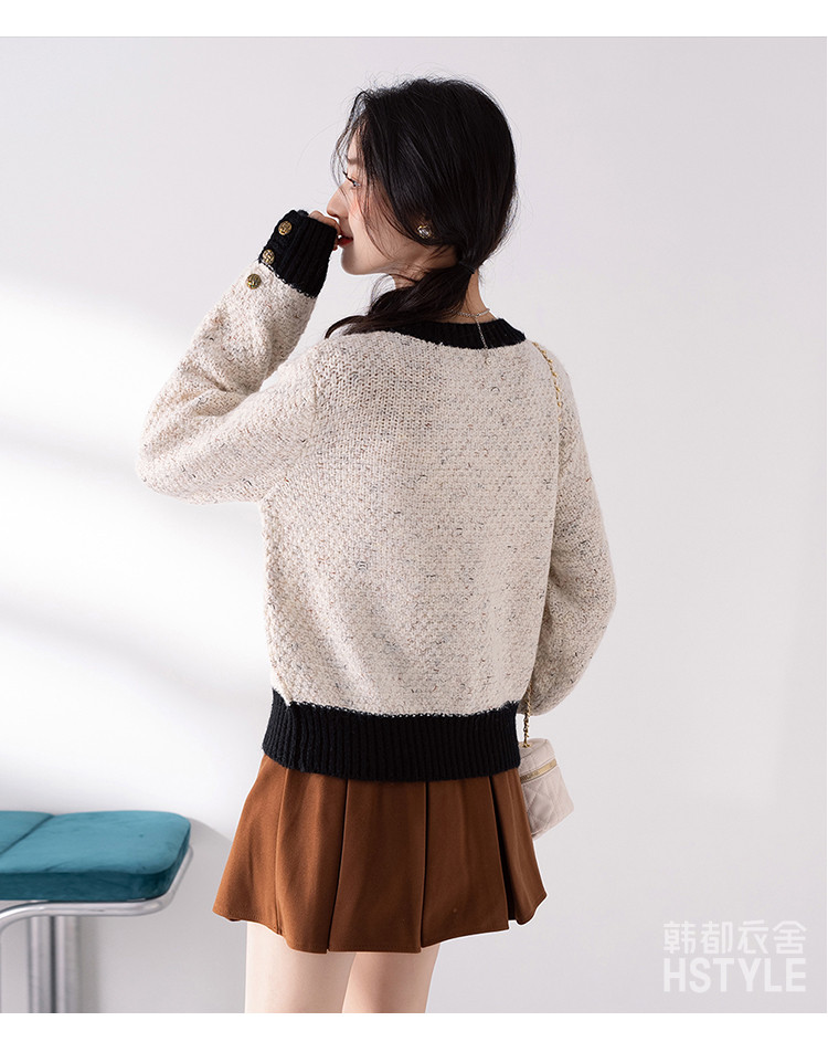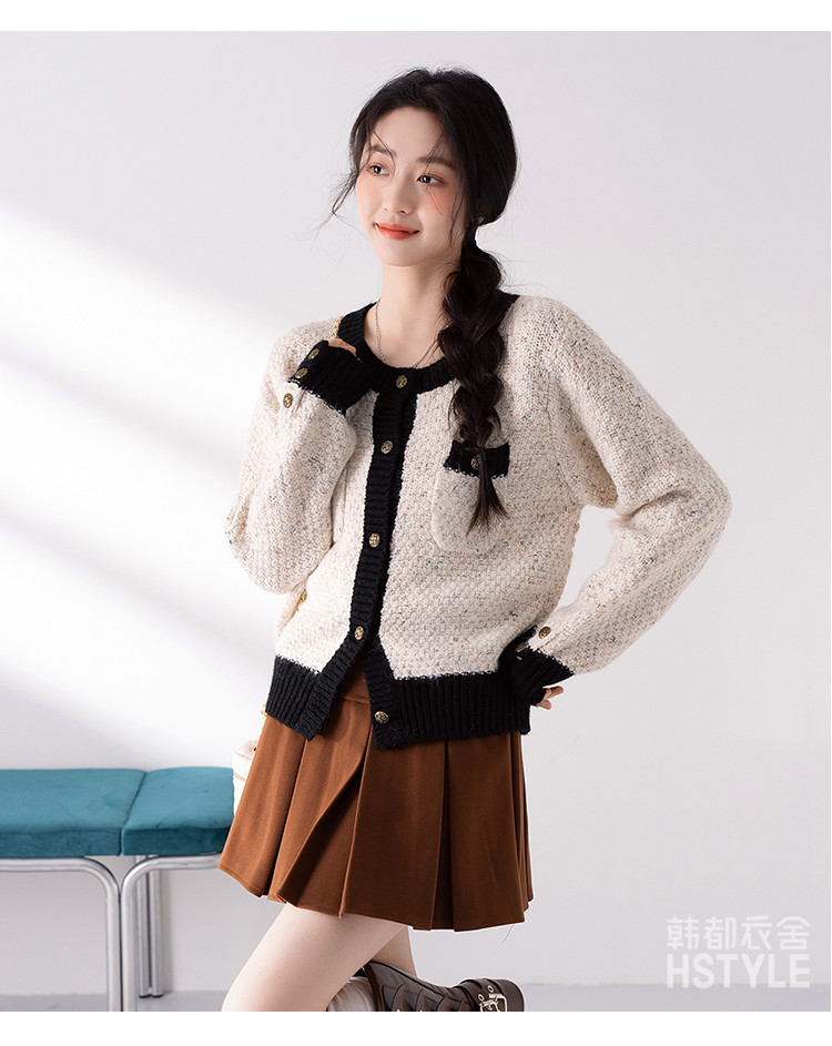 商品名称:【短款法式小香风开衫女】春季款淑女撞色上衣长袖温柔女式针织衫 156043