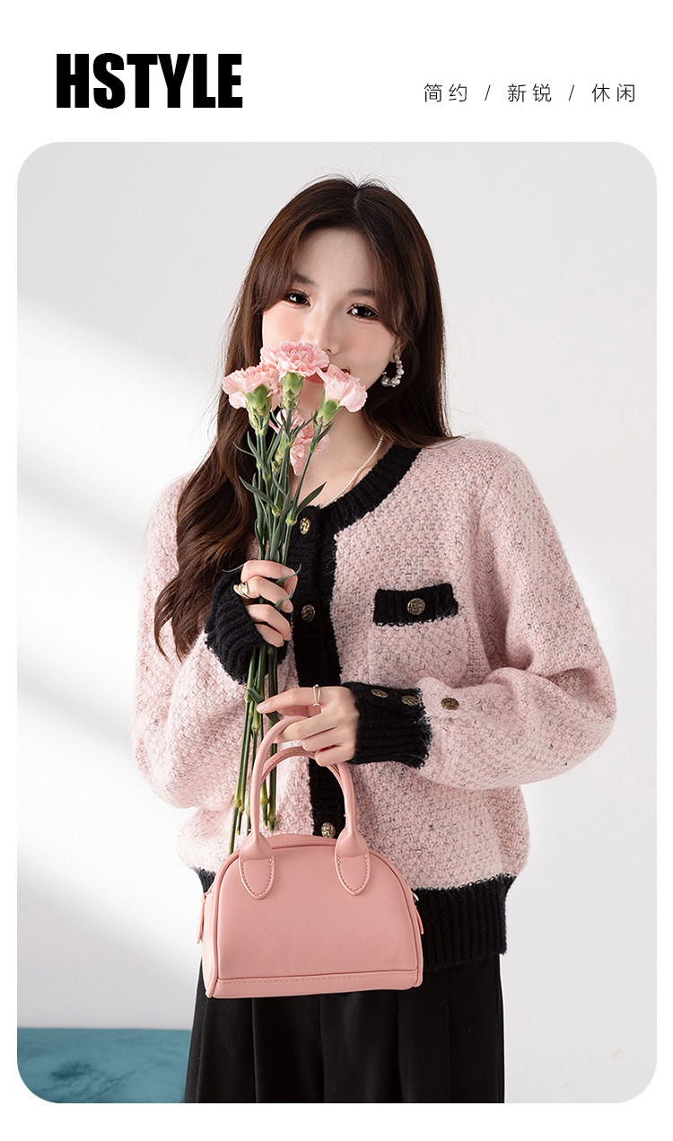 【短款法式小香风开衫女】春季款淑女撞色上衣长袖温柔女式针织衫 156043