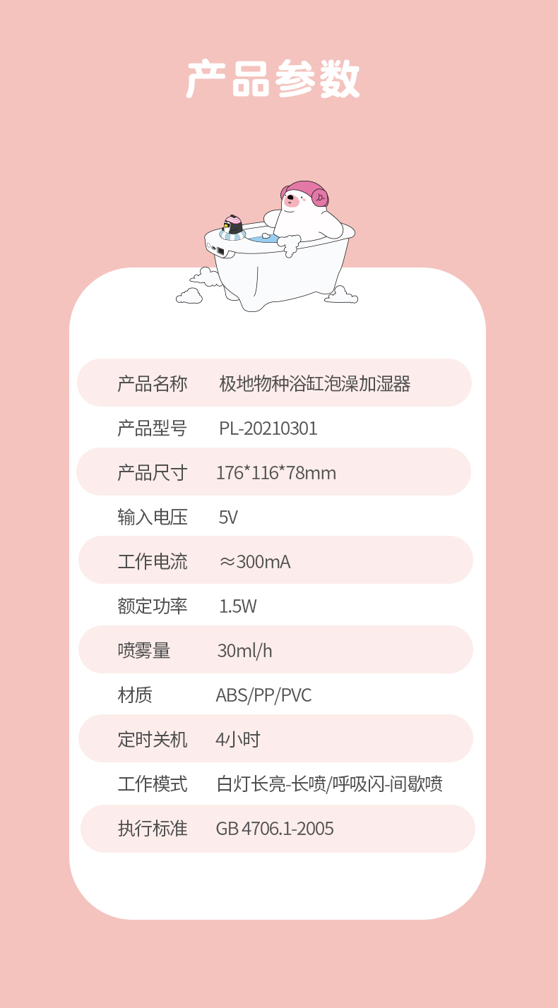 商品名称:极地物种三八妇女节礼物浴缸加湿器高颜值小型空气家用静音卧室内孕妇婴儿童可爱送男生女友生日礼物宿舍学生