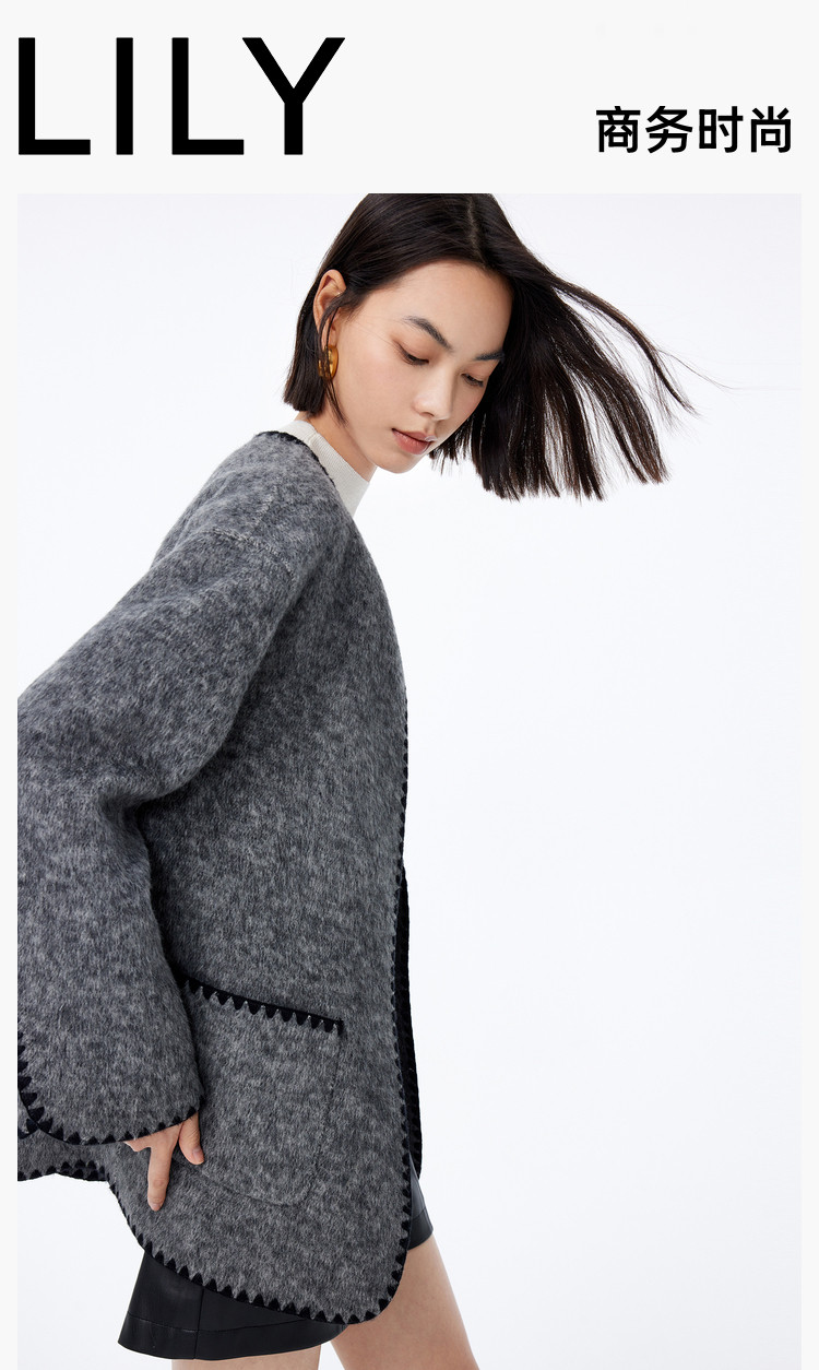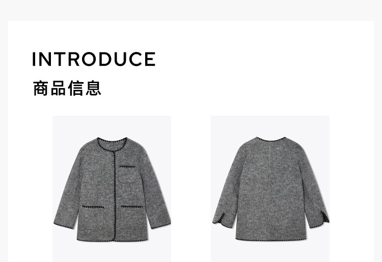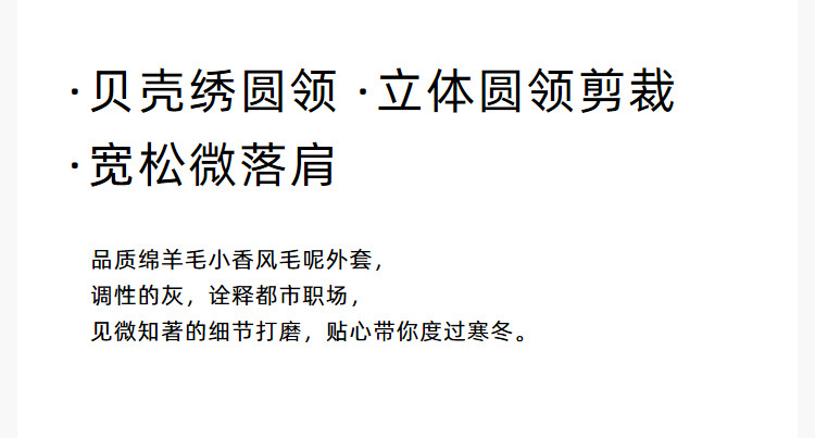 商品名称:冬季绵羊毛复古小香风别致无扣通勤毛呢外套小个子 757147
