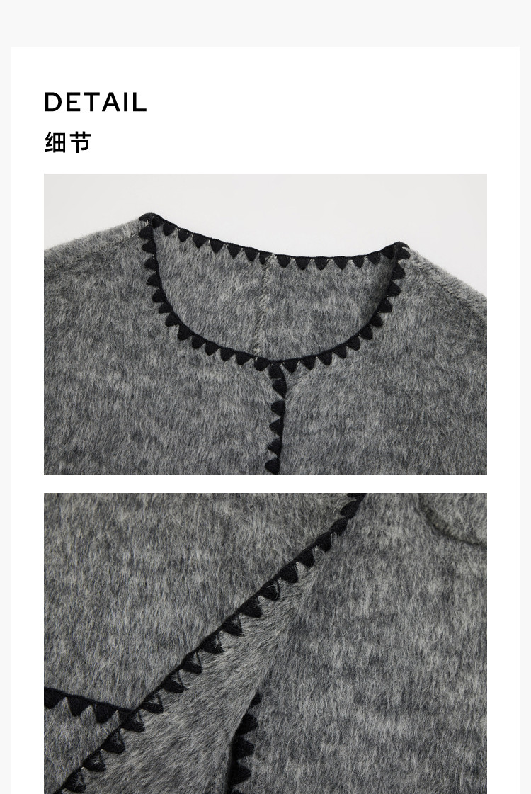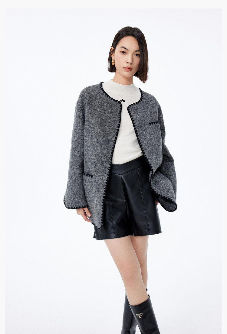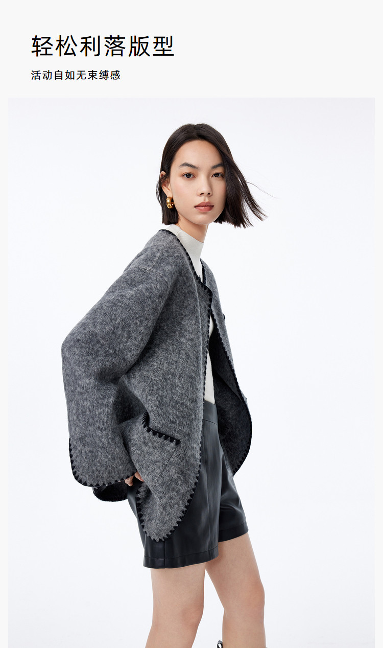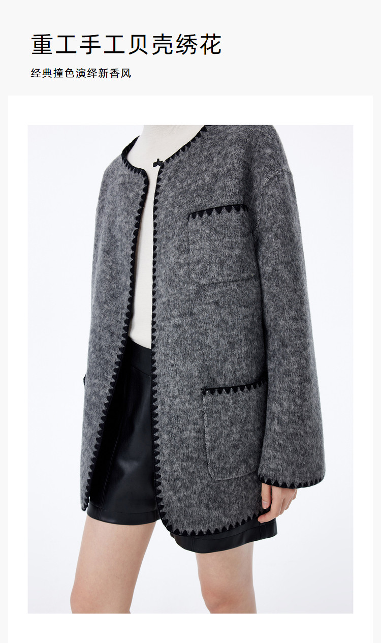 冬季绵羊毛复古小香风别致无扣通勤毛呢外套小个子 757147