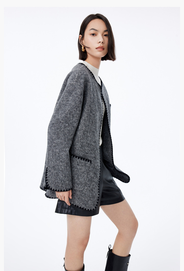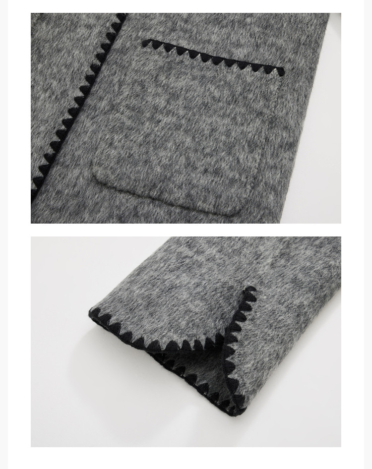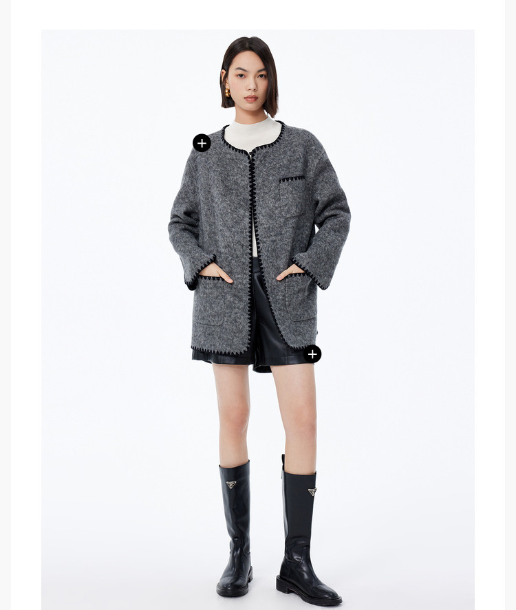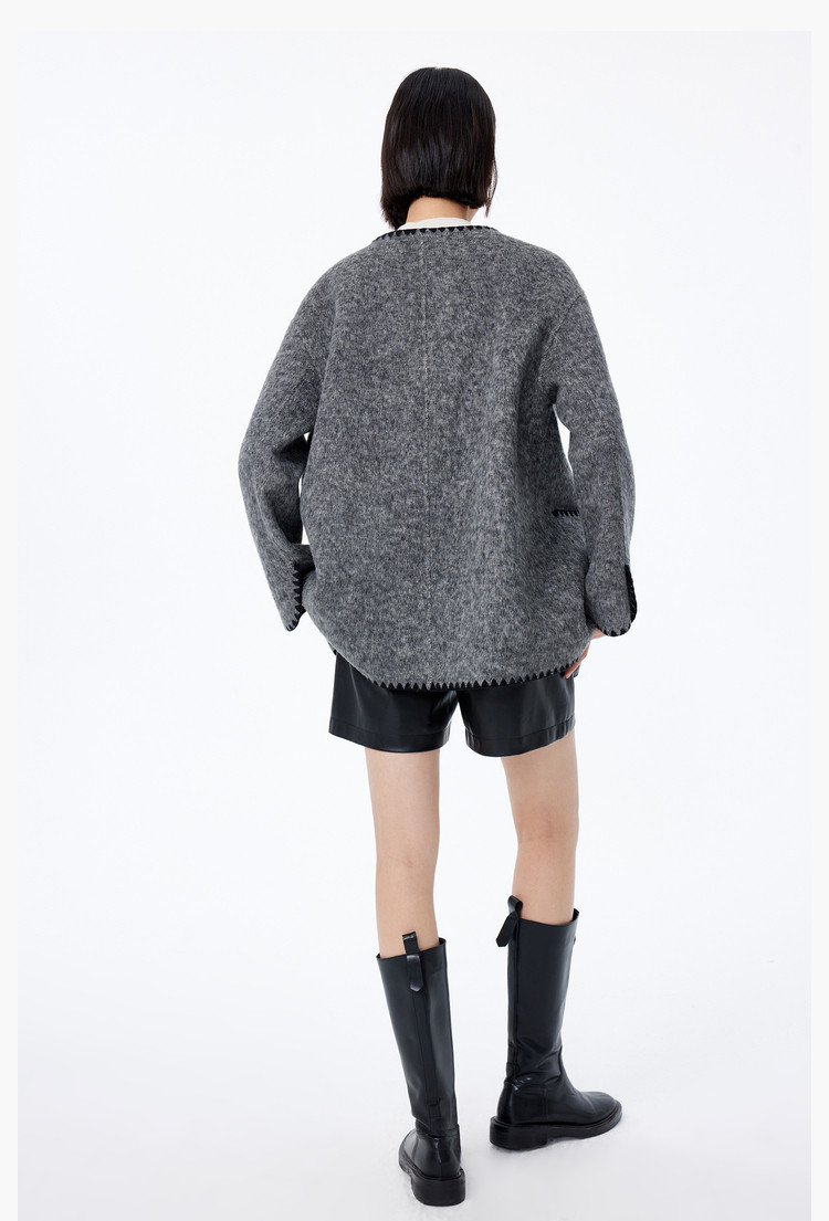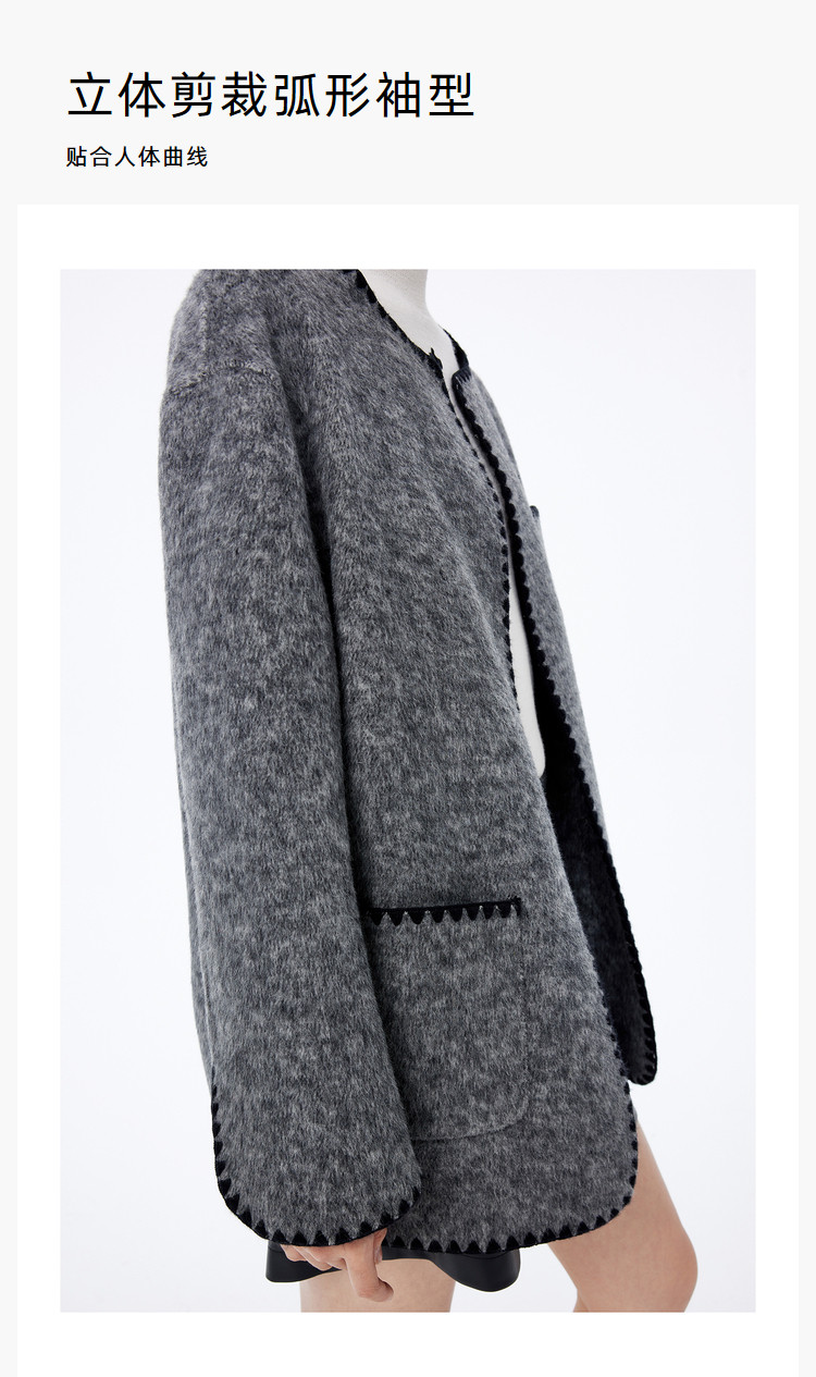 冬季绵羊毛复古小香风别致无扣通勤毛呢外套小个子 757147