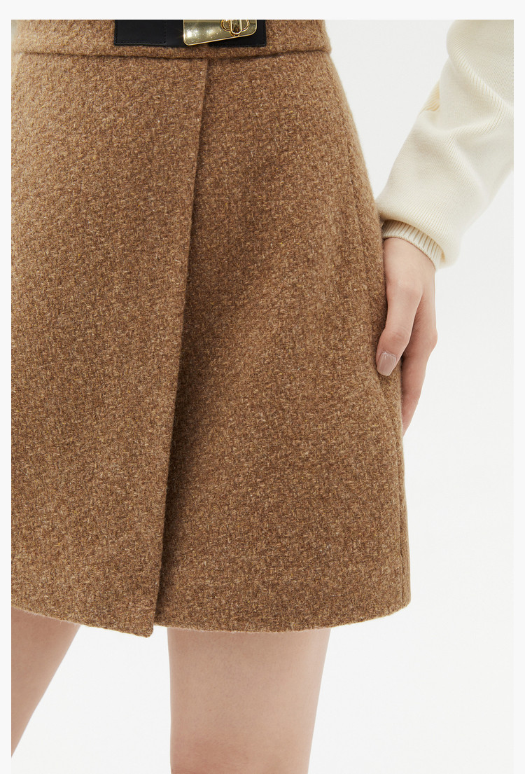 【商场同款】春季绵羊毛羊驼毛高腰A字短裙半身裙 048283
