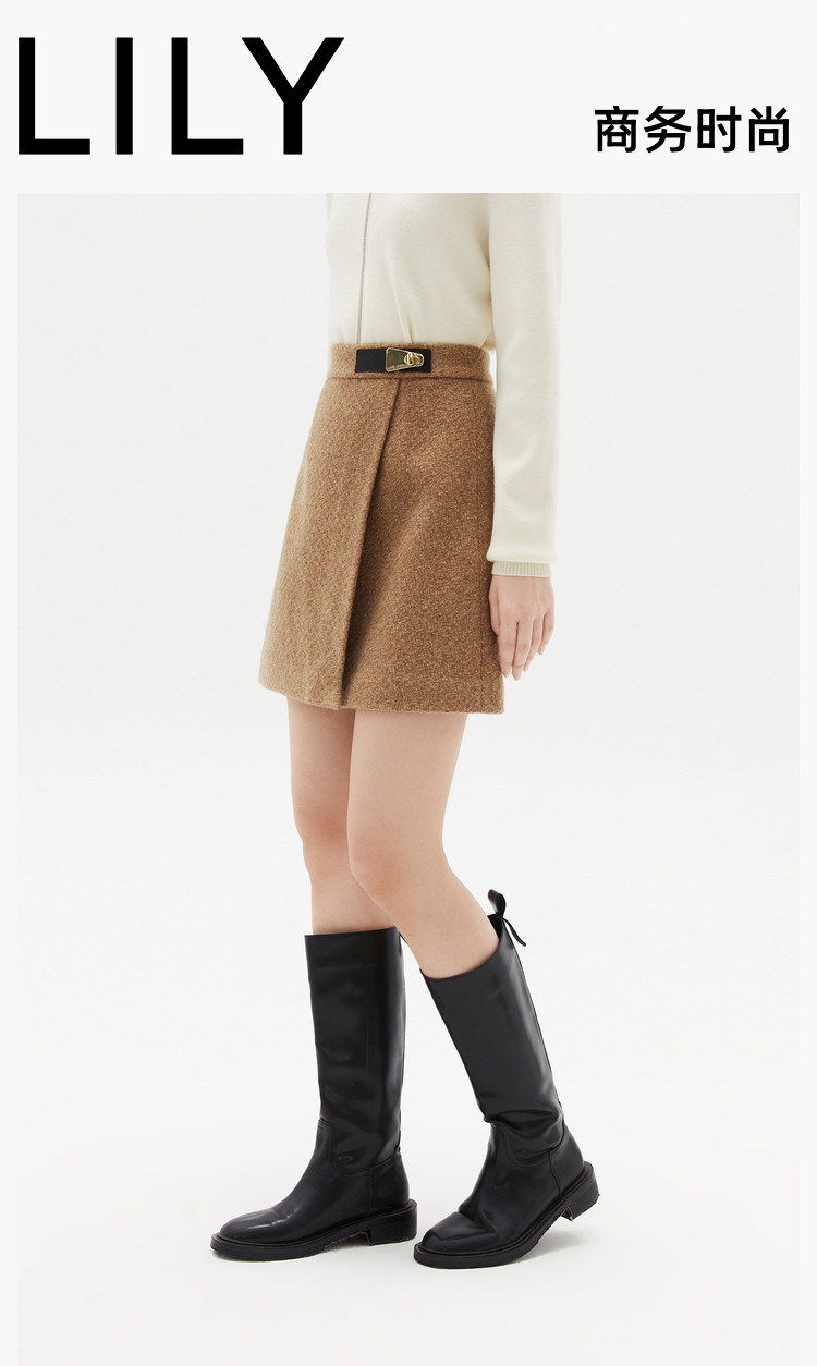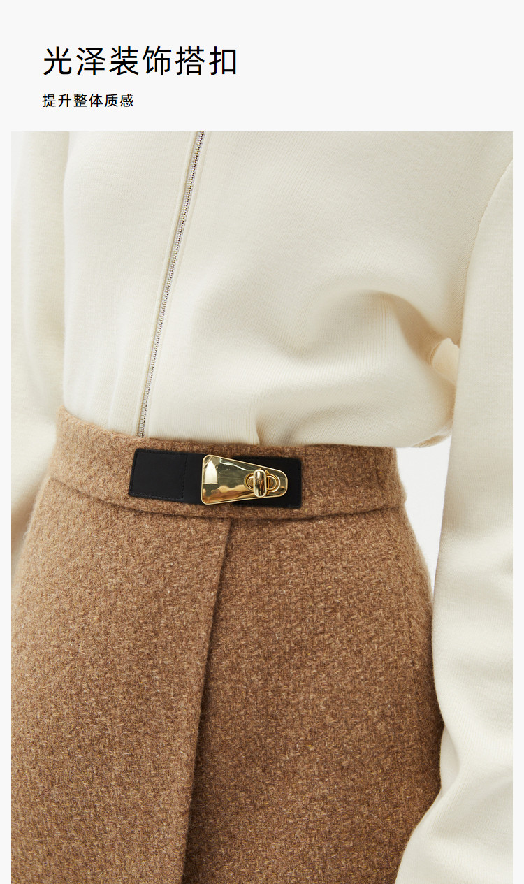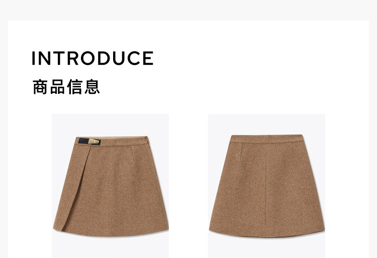 商品名称:【商场同款】春季绵羊毛羊驼毛高腰A字短裙半身裙 048283