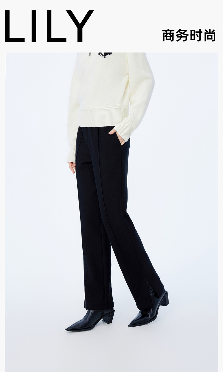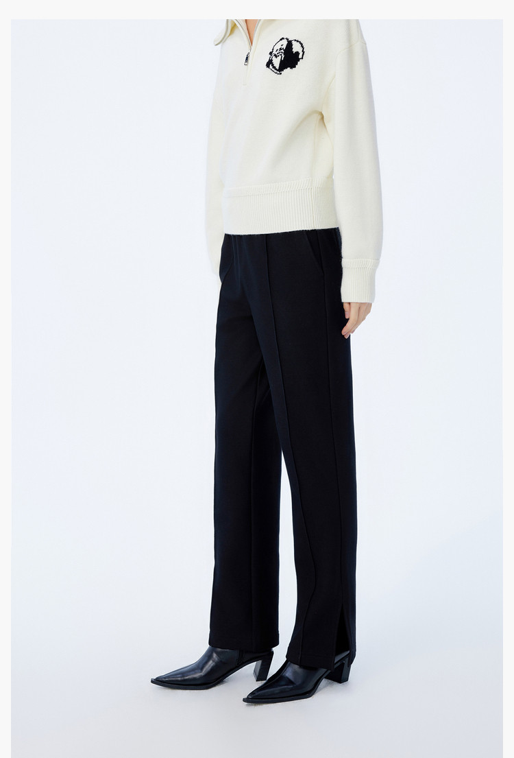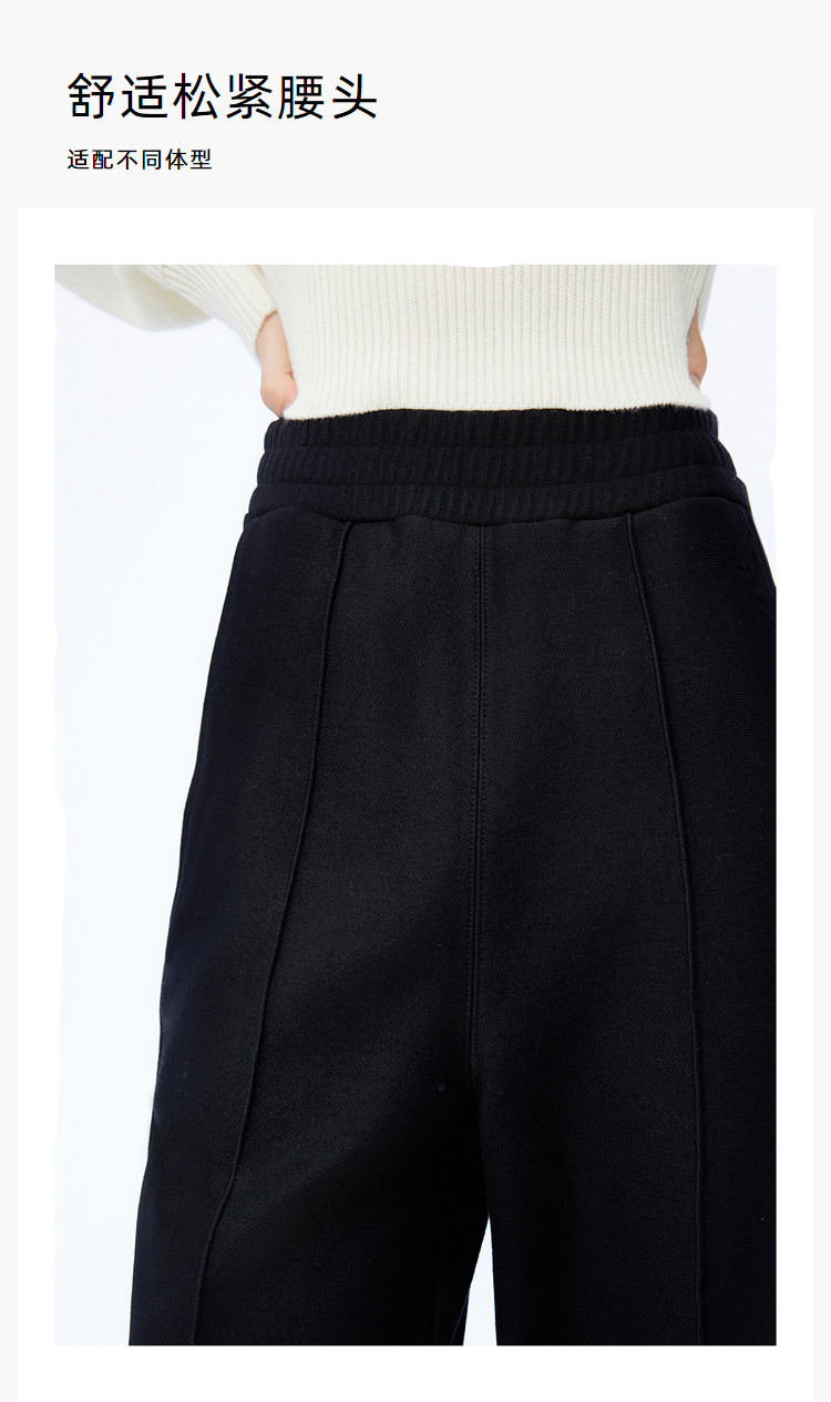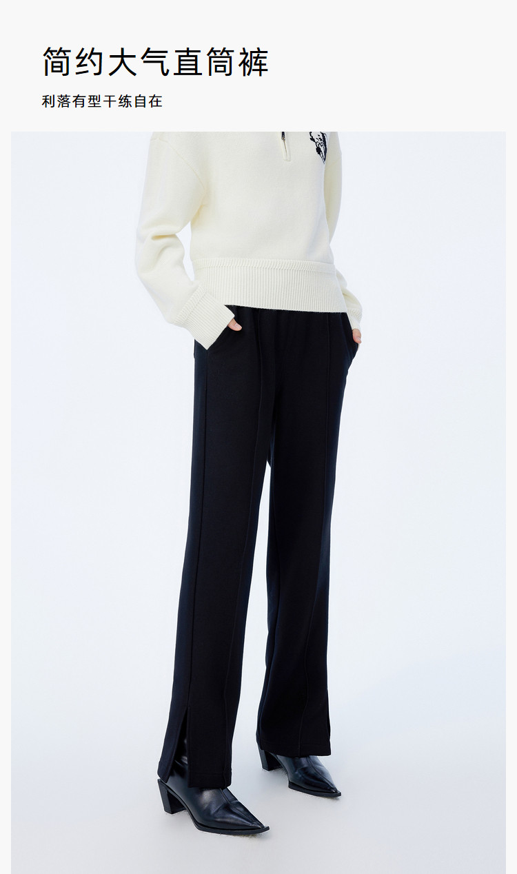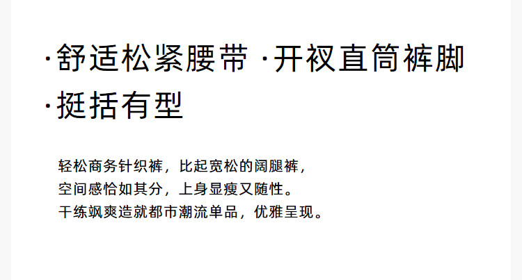 商品名称:春季裤子女春季都市通勤款垂坠感显瘦气质高腰直筒针织休闲裤 094107