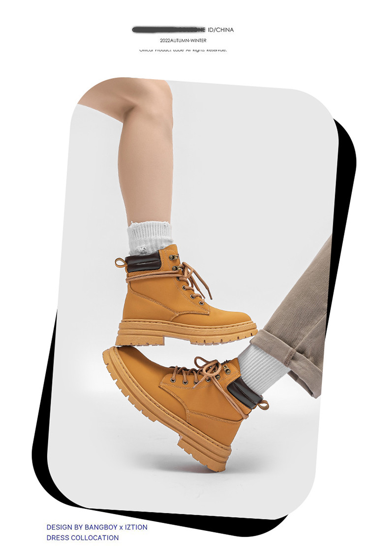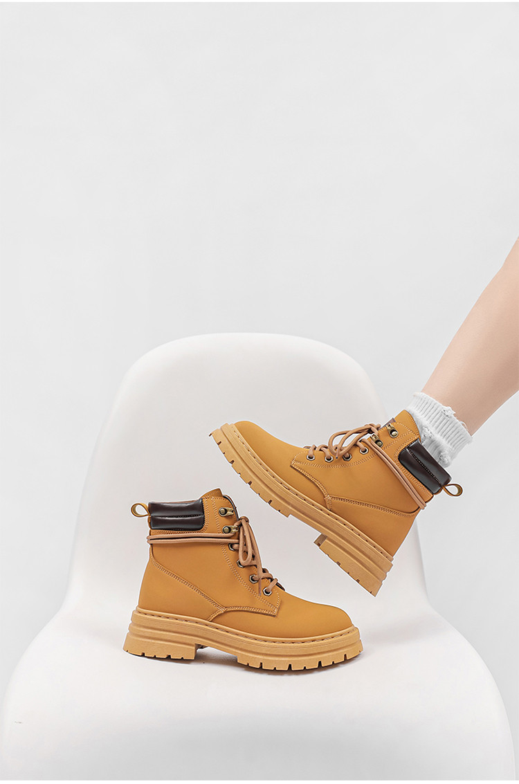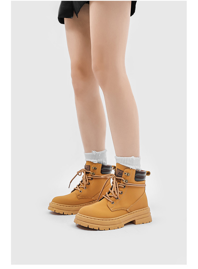 商品名称:英伦风马丁靴女25春季款女鞋百搭舒适休闲靴女洋气大黄靴女 734868