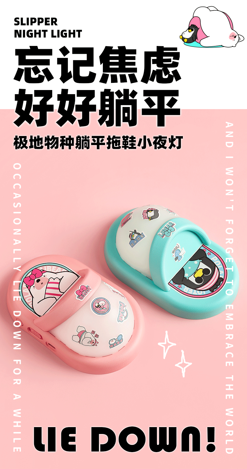 极地物种拖鞋小夜灯婴儿喂奶灯起夜卧室氛围床头灯壁灯插电充电睡眠灯 躺平拖鞋夜灯