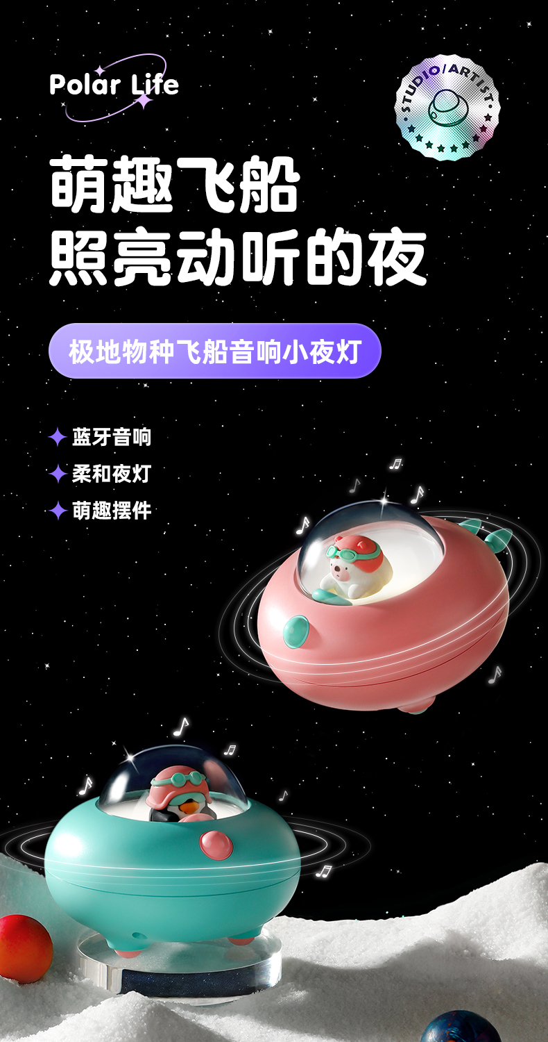 商品名称:极地物种 无线蓝牙音响手机户外大音量低音炮家用创意宇宙飞船可爱迷你小音箱夜灯照明七夕情人节礼物