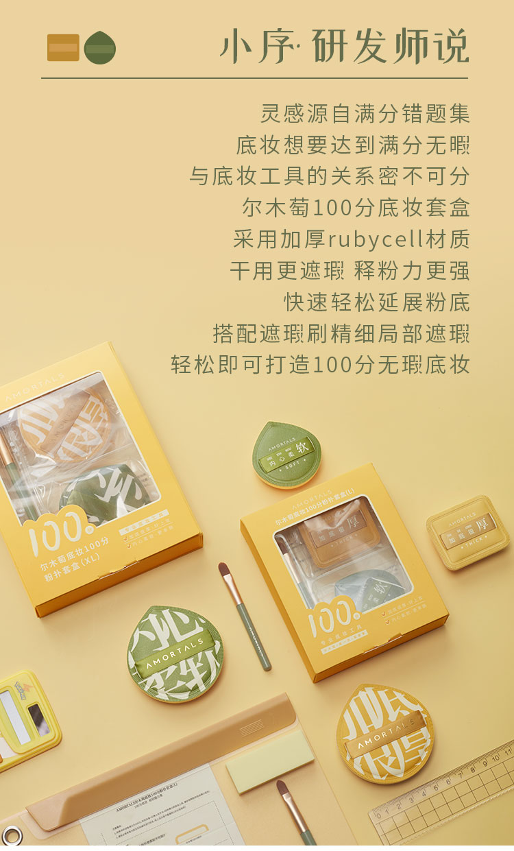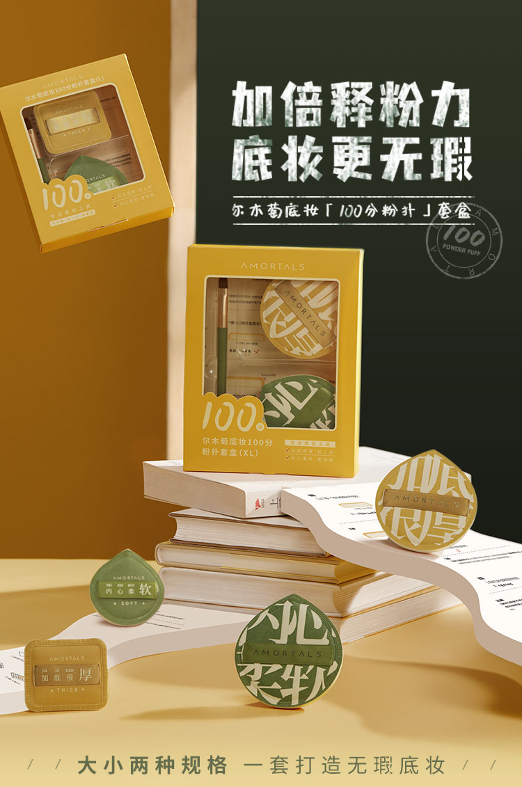AMORTALS尔木萄 底妆100分粉扑套盒 XL/L 2粉扑+遮瑕刷/盒