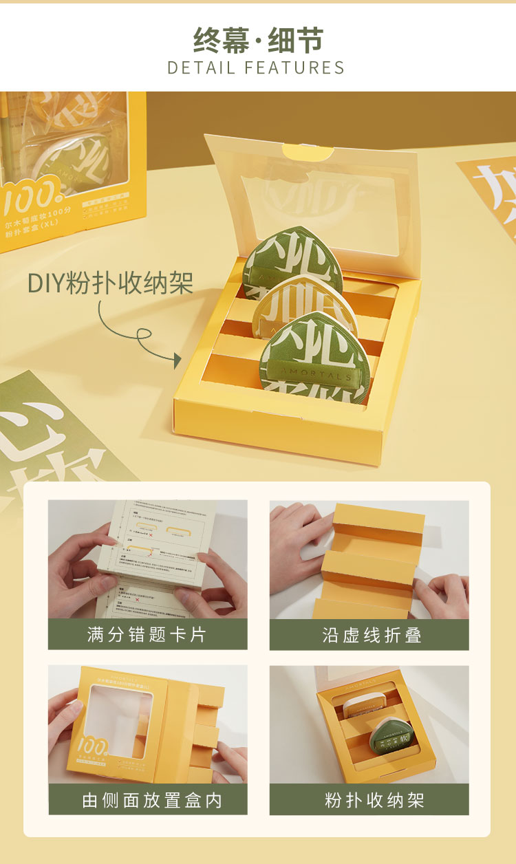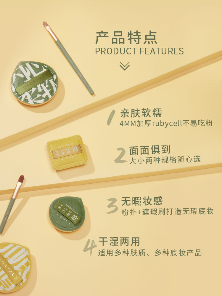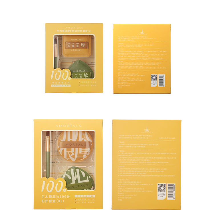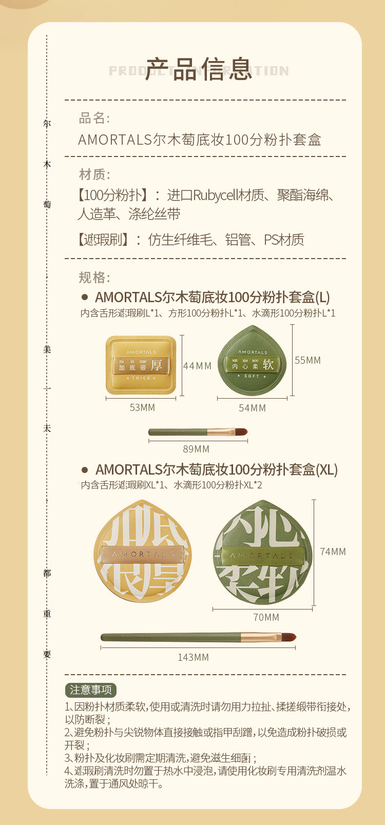 商品名称:AMORTALS尔木萄 底妆100分粉扑套盒 XL/L 2粉扑+遮瑕刷/盒