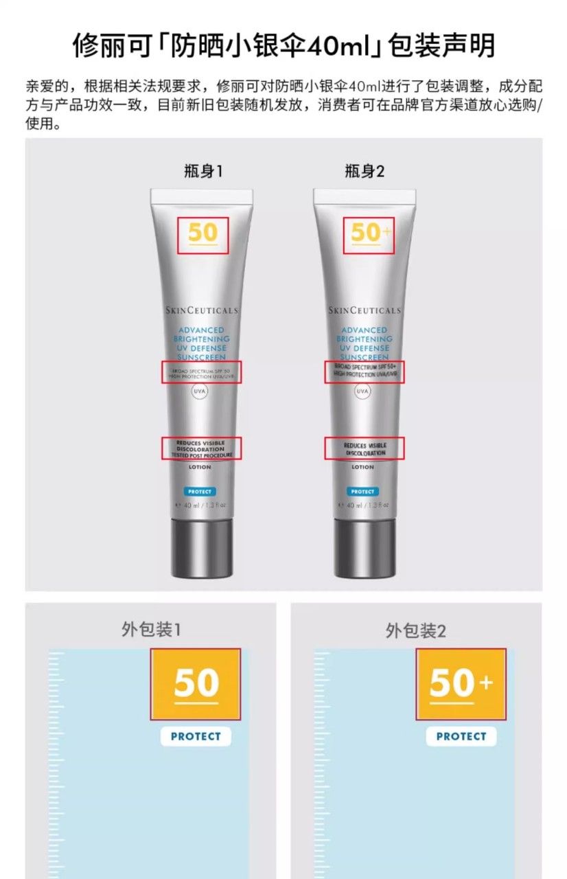 商品名称:SkinCeuticals/修丽可 小银伞防晒 SPF50+ 清爽焕亮防晒乳防晒霜 40ml 新旧版本随机发