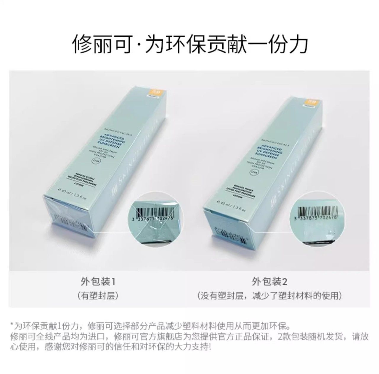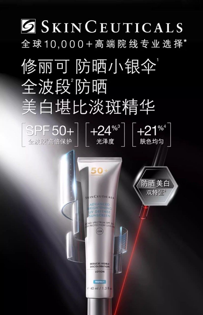 SkinCeuticals/修丽可 小银伞防晒 SPF50+ 清爽焕亮防晒乳防晒霜 40ml 新旧版本随机发