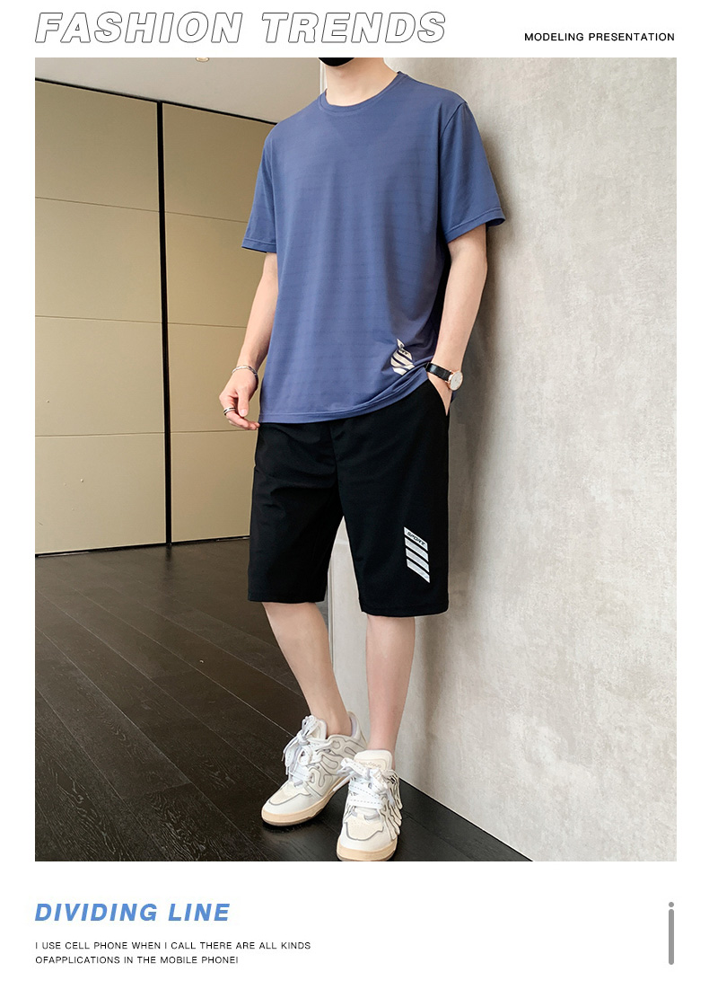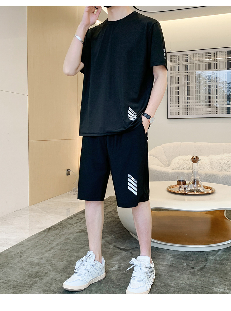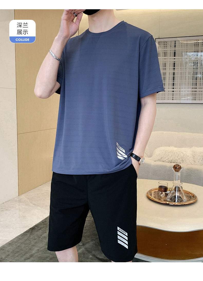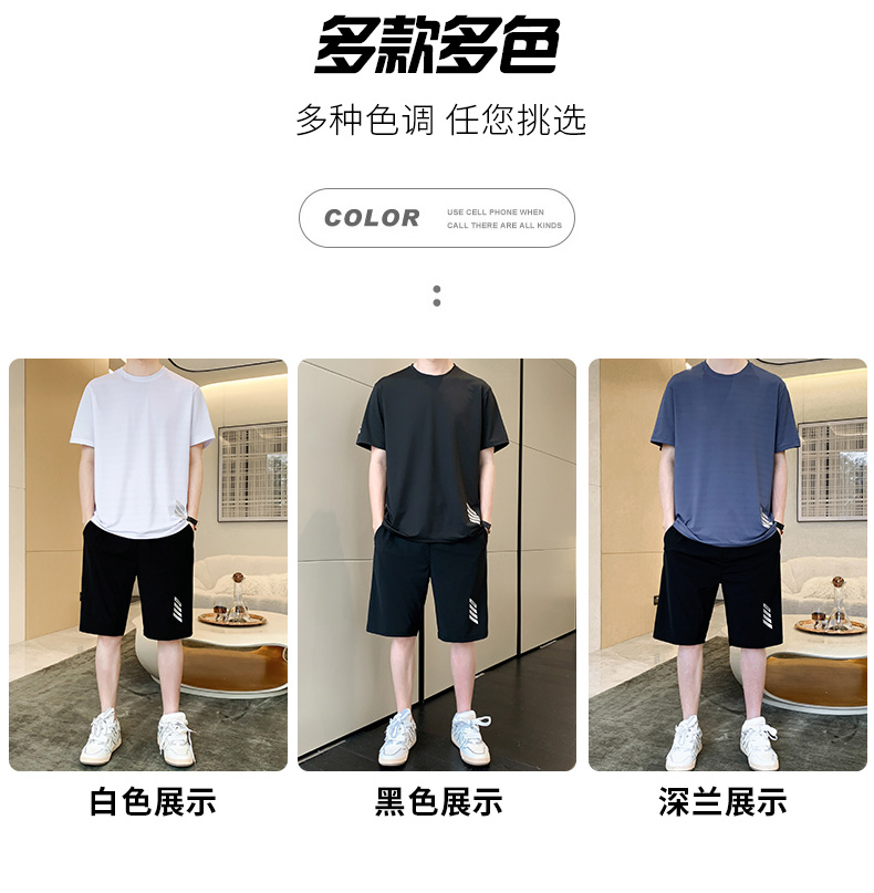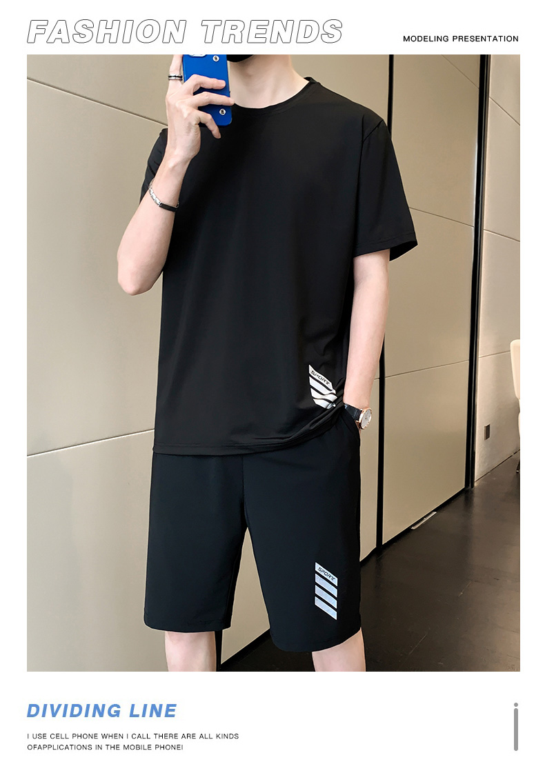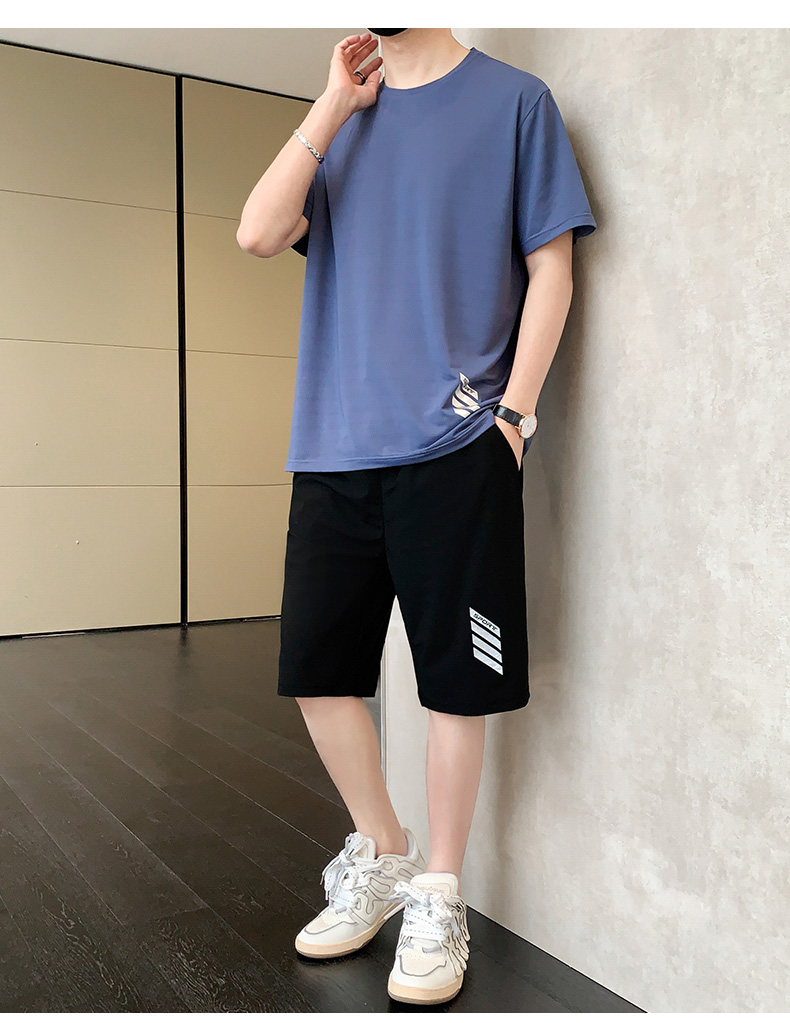 商品名称:型煜 男士休闲运动套装冰丝短袖夏季新款帅气搭配短裤韩版潮牌 HH0858